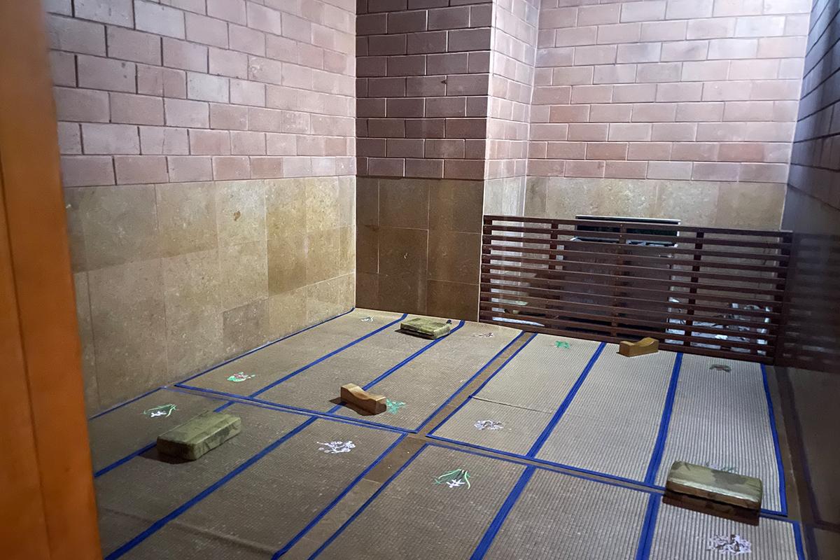 The interior looks like this, and you just need to bring the pad outside and sit on it. Also, if you want to use the jjimjilbang privately because there is a TV, you can use here. However, there is a time limit for usage, so please make sure to check at the front desk before making a payment and using it!