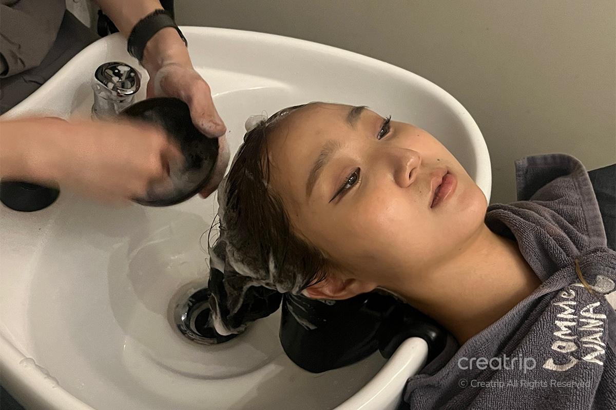 Next, they've washed off the dye with shampoo and also given a refreshing massage!