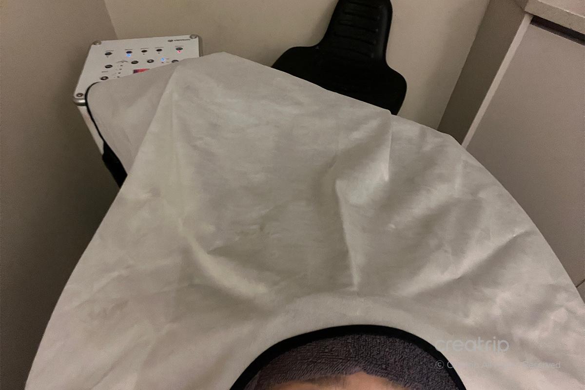 Next, steam is applied to the scalp to enhance the absorption of the upcoming scalp treatment. As time passes, you can feel the steam emerging around your face!