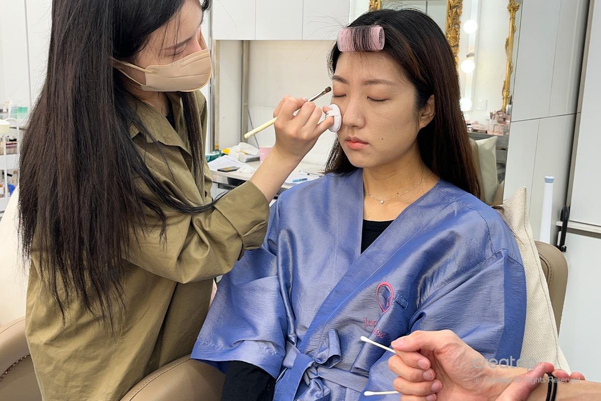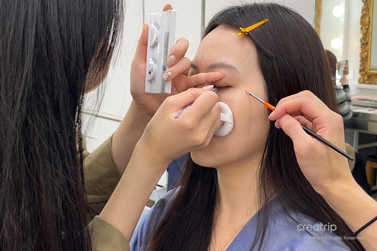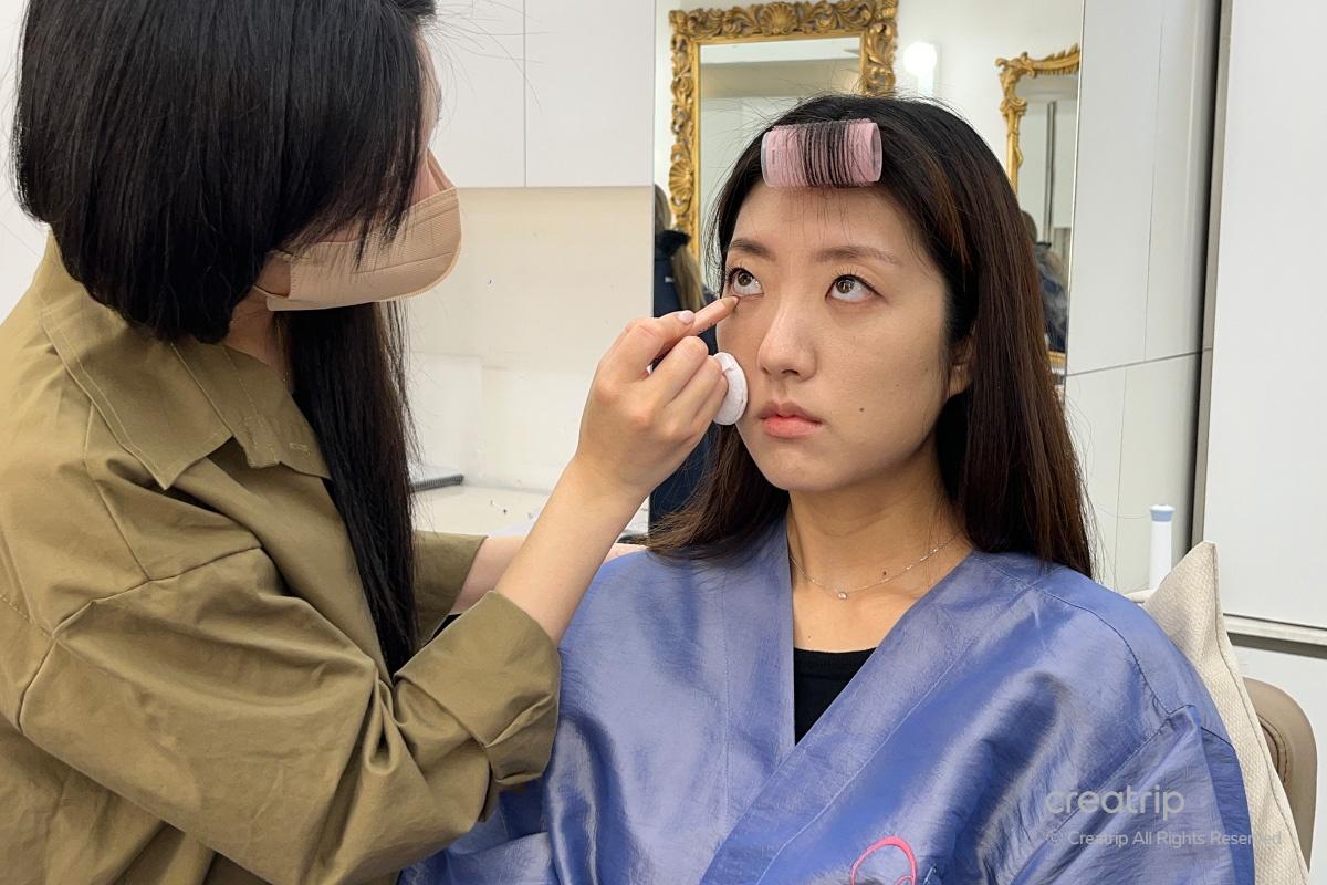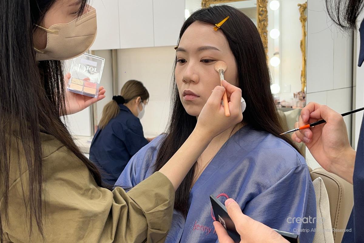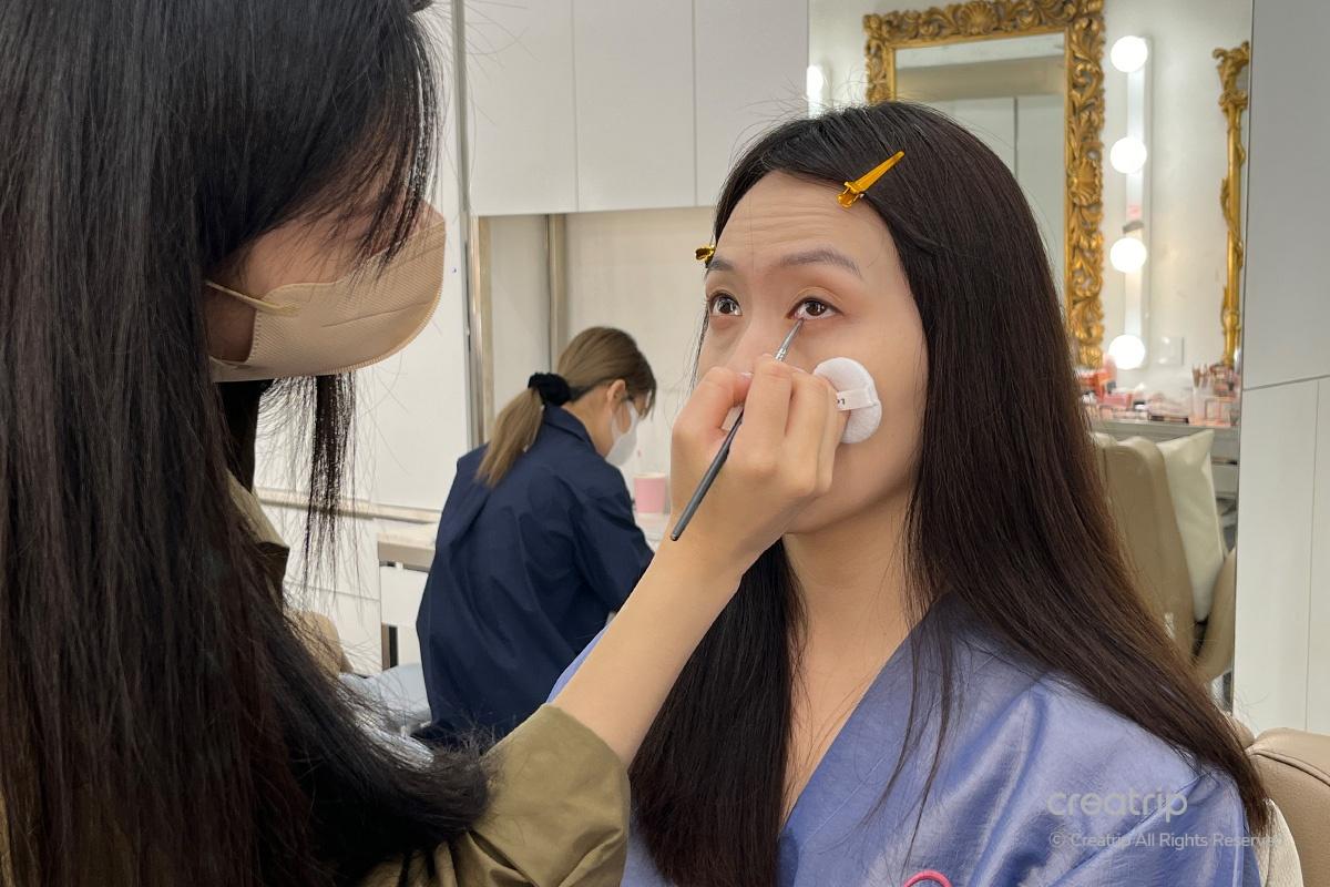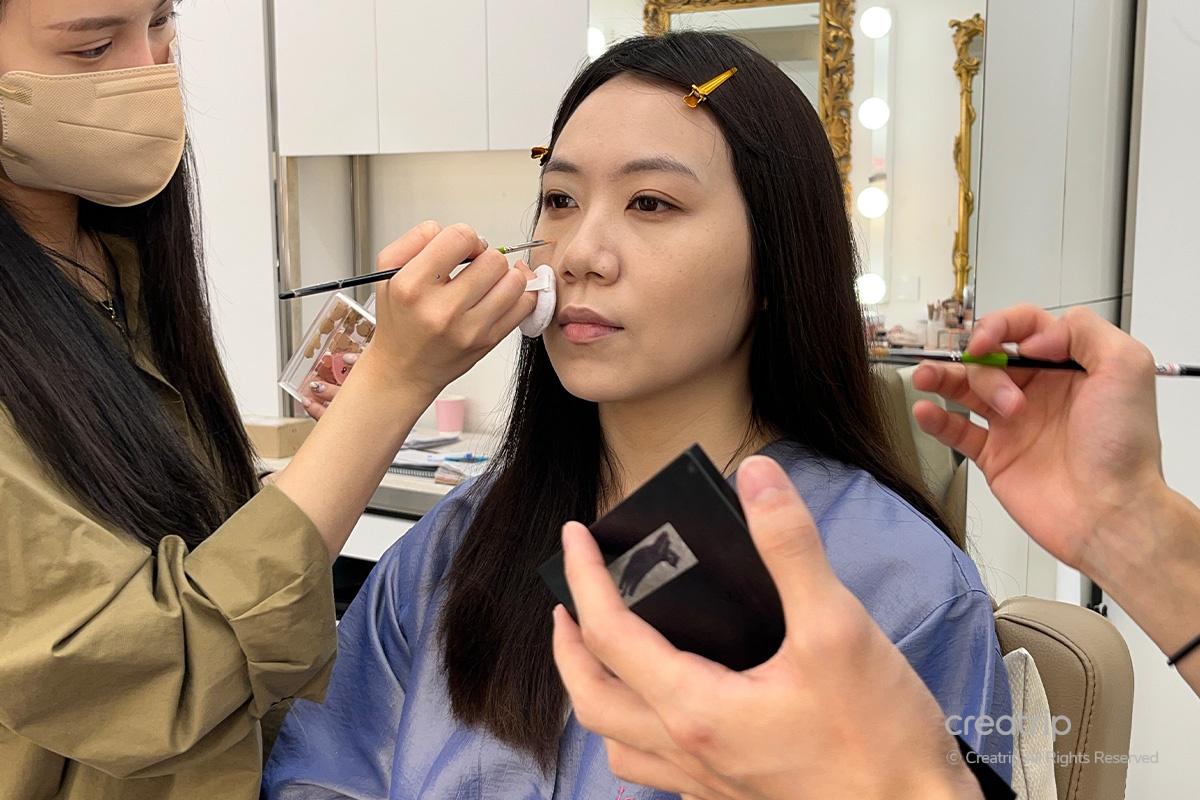 One of our editors also received hairstyling and makeup. Similar to receiving makeup before hairstyling, they started with a meticulous skincare.