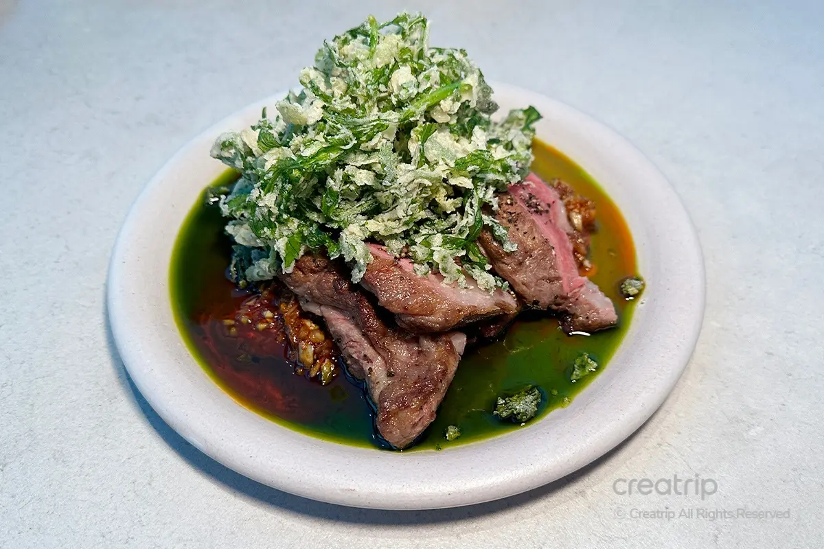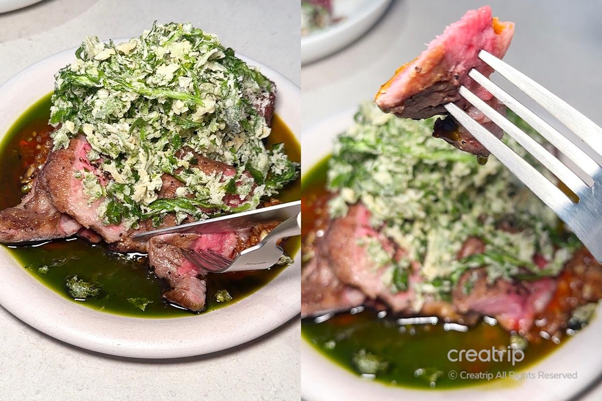 Our favorite was definitely the Char-Grilled Iberico Pluma Steak, featuring Iberico Bellota Pluma, red chimichurri, perilla oil, and vegetable tempura, the combination of Western steak with Korean perilla oil was surprisingly harmonious, and it was truly delicious!