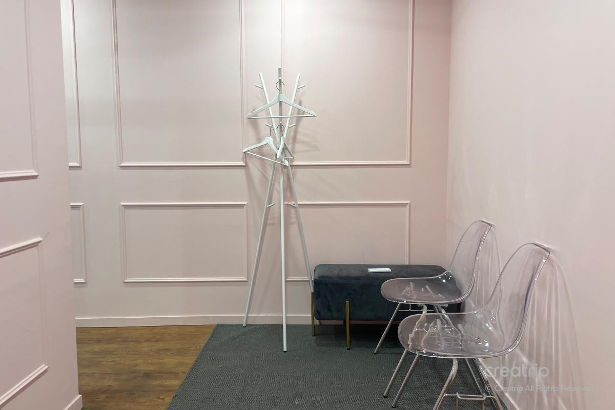 When you walk in, the place is filled with a soft pink light. They have big lights set up in the area where they do the personal color analysis, so you can see the colors clearly.