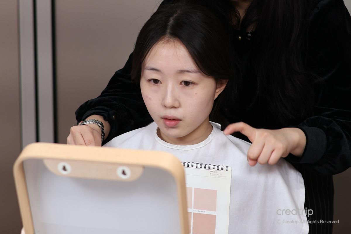 Before starting the personal color diagnosis, they analyzed our editor's skin and hair tone. Understanding the basics of personal color theory and analyzing it based on each individual's skin and hair tone made the whole process much easier!