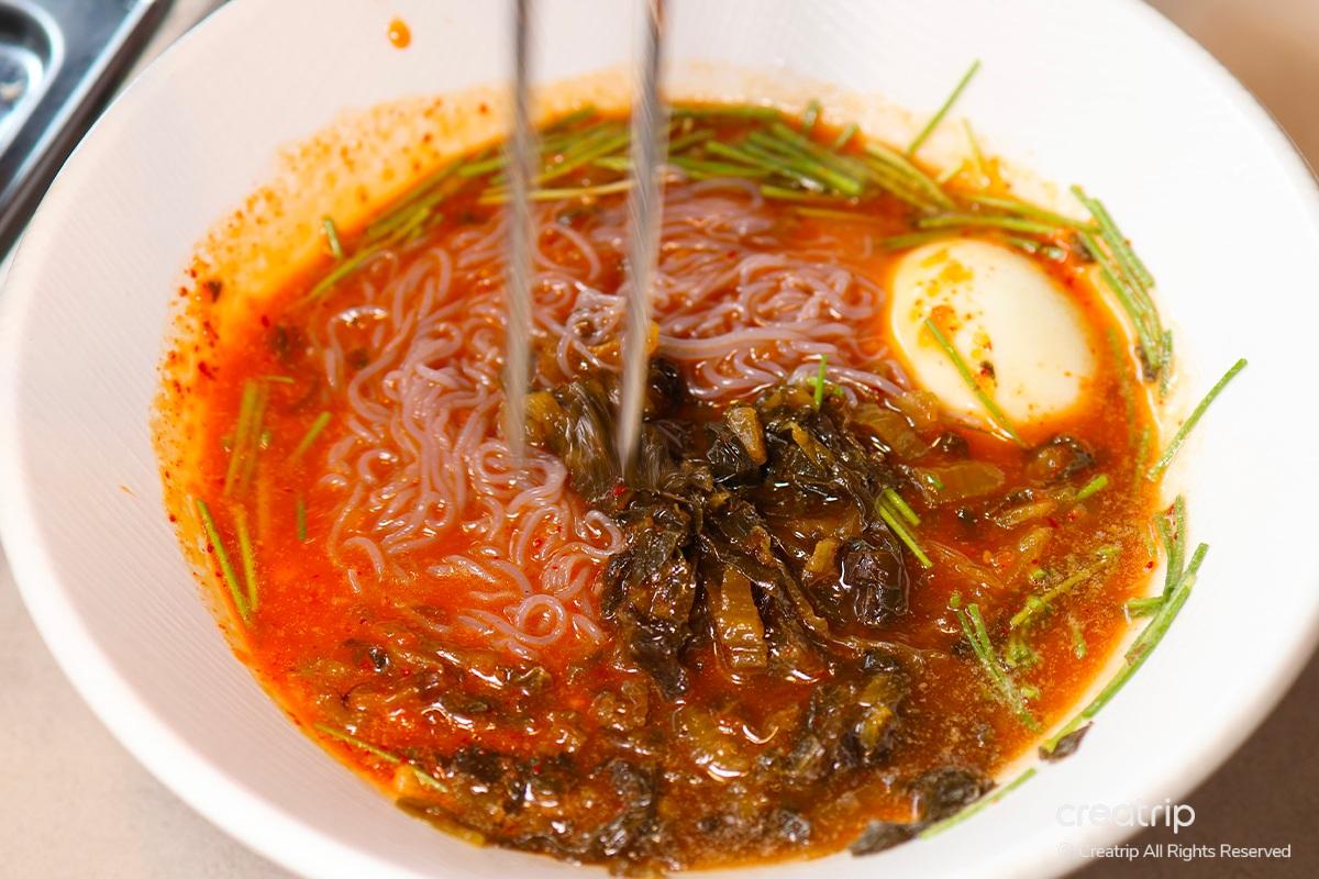 Also add ramen noodles to spicy eel soup, and when the noodles are cooked to your liking, just scoop up the ingredients and broth together to eat.