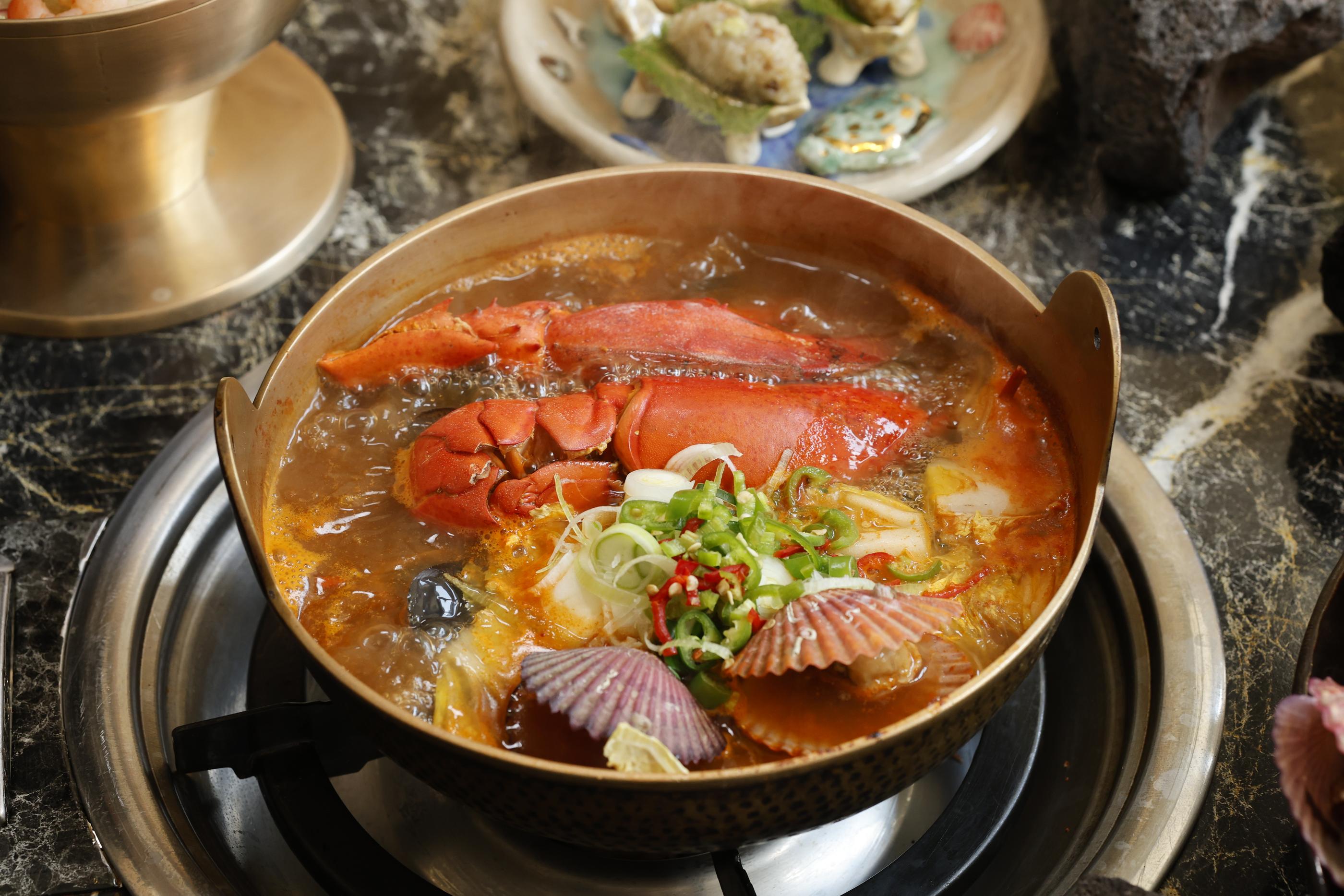 Lobster jjim is a menu that consists of lobster meat stuffed with butter-seasoned vegetables and lobster innards.