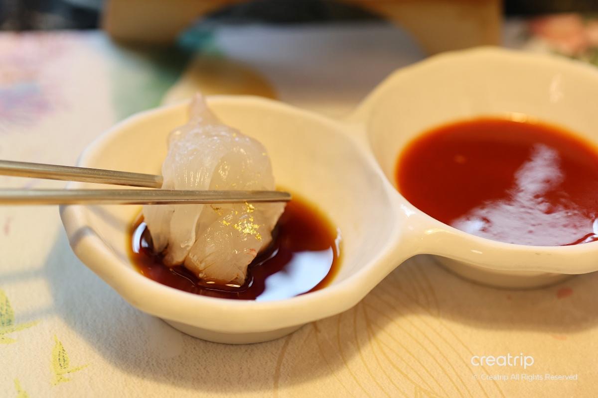 First, I tried a fresh lobster sashimi. Just looking at the lobster sashimi makes you feel the tangy texture, and it is sprinkled with gold powder, giving it a luxurious feel. As soon as you take a bite, you'll feel the taste with a chewy texture and fresh sweetness.