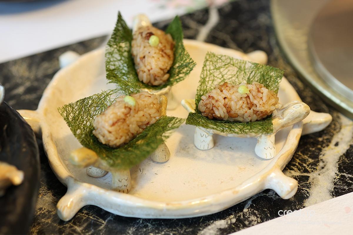 I also tried the grilled abalone with butter and seaweed roll that were served as the basic appetizer menu. A combination of clean and chewy abalone meets butter for a deeper flavor, and even deeper taste is added by topping rice fried with lobster innards with kelp and wasabi to create kelp makki, a combination that cannot be tasteless.