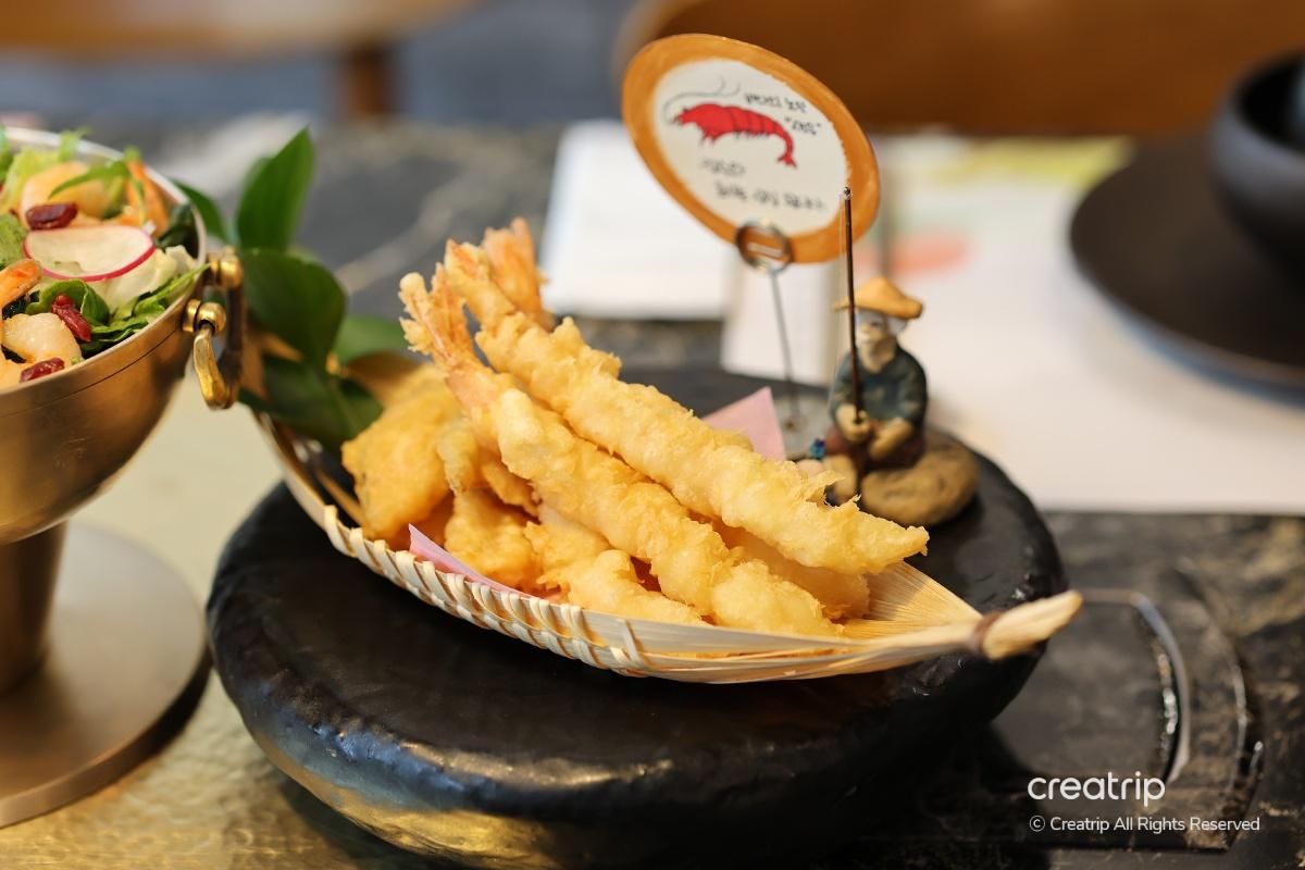 Today I ordered the 'Hot and Spicy Lobster Mukbang Set' and the 'Dancing Lobster Course for 1.' The set includes butter grilled abalone, shrimp salad, seaweed roll, shrimp tempura, and pumpkin tempura.