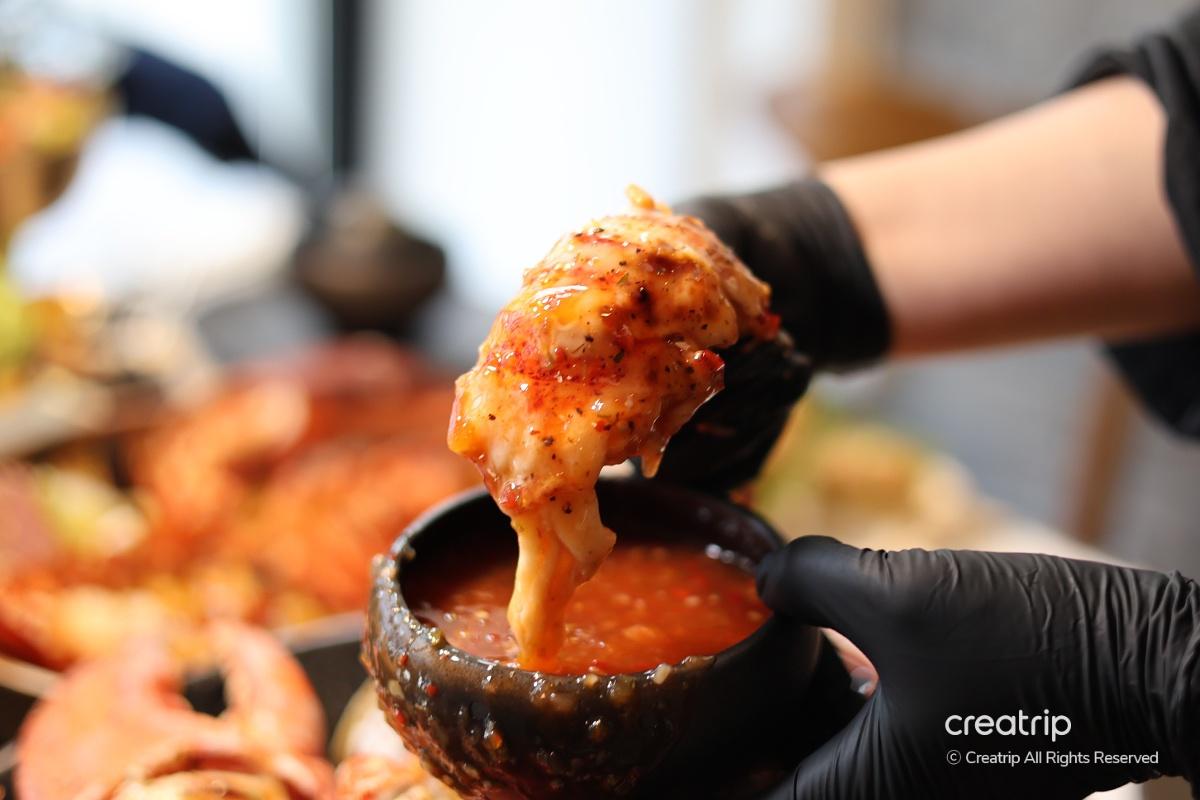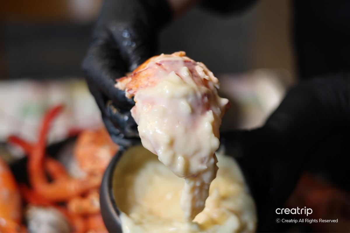 This time, I tried dipping lobster meat in sweet chili sauce and cheese fondue. A lobster infused with the sweetness of sweet chili sauce and a hint of spiciness, along with the richness of butter, creates a mouthful of flavor. Soft and creamy cheese fondue meets tender and juicy lobster, creating a fantastic flavor that melts in your mouth.