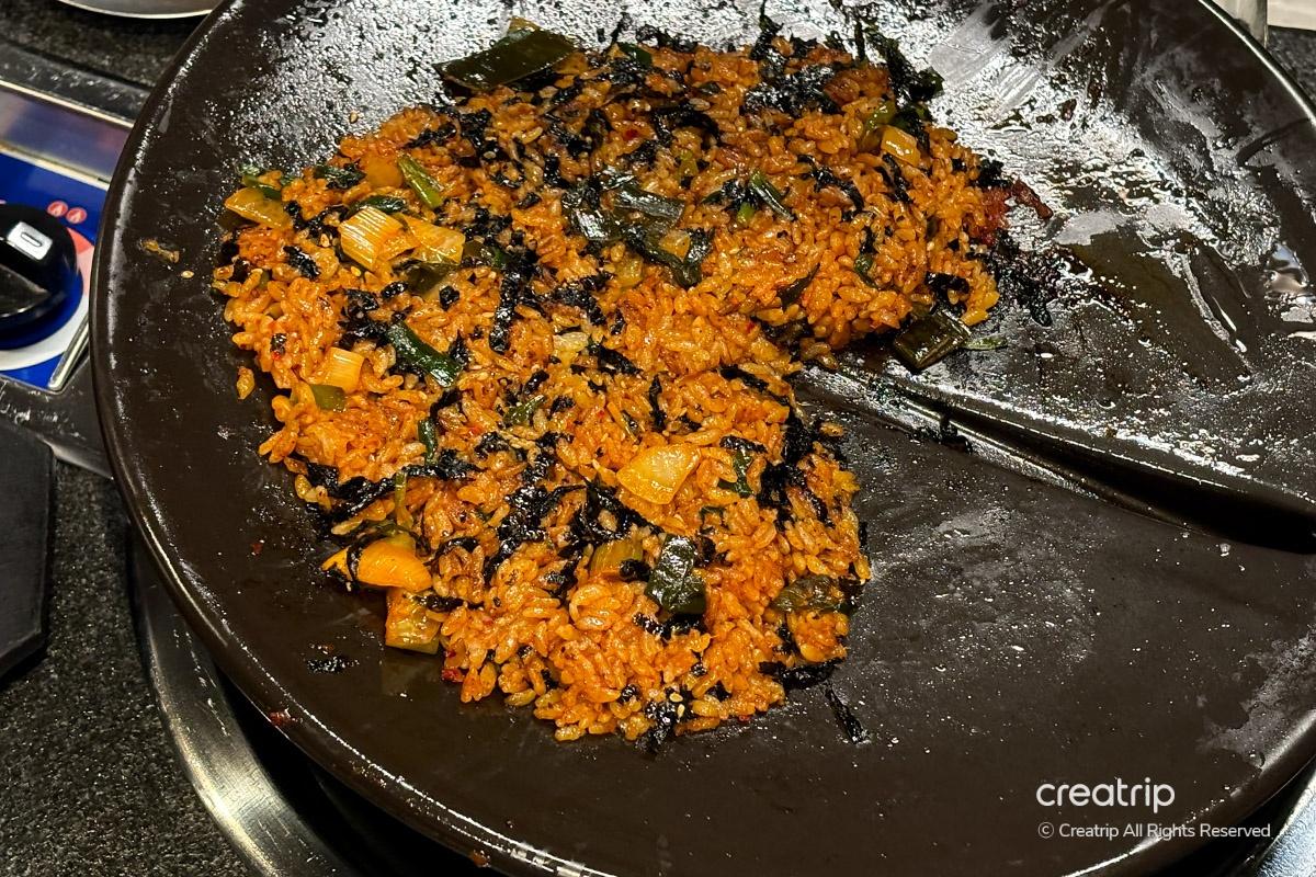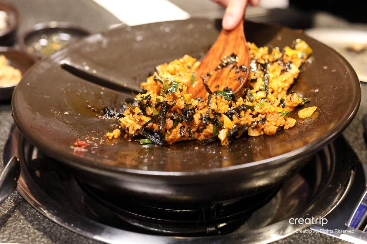Finally, it's jjotbap (fried rice) called Korean dessert. Fried rice is similar in taste to regular kimchi fried rice and is good to eat as a last course. The staff directly fried it on the grill and shaped it into a heart, which was nice.