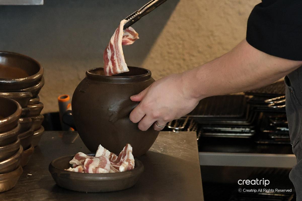 Using the advantages of Onggi, a grill plate is created, making the material luxurious and enhancing the taste of the meat even more.