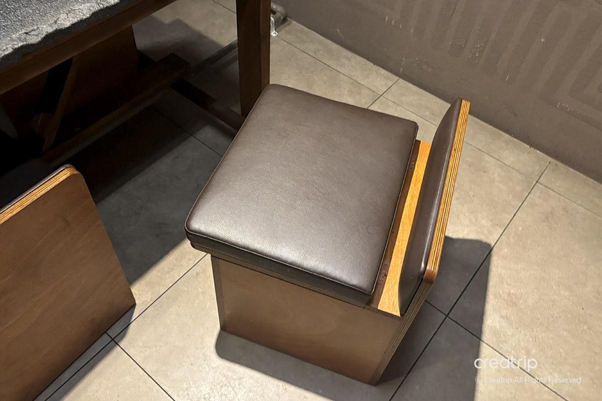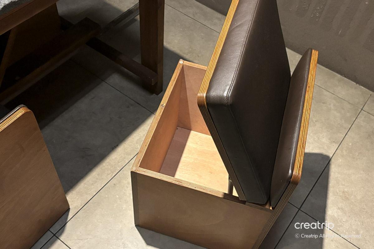Chairs available on the 1st and 2nd basement floors are designed to open and store belongings.