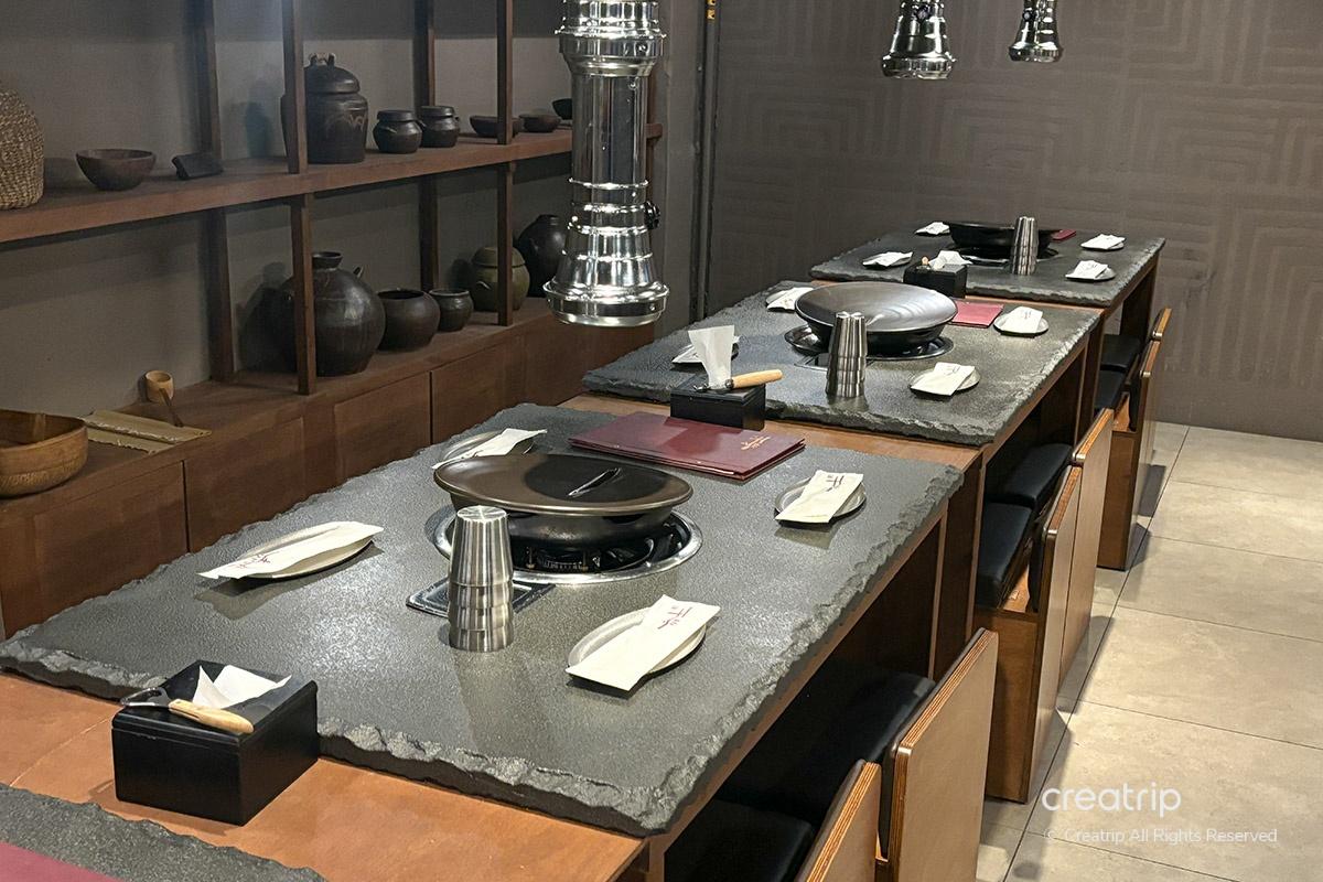 The restaurant combines traditional Korean charm with modern elements for a pleasant dining experience.