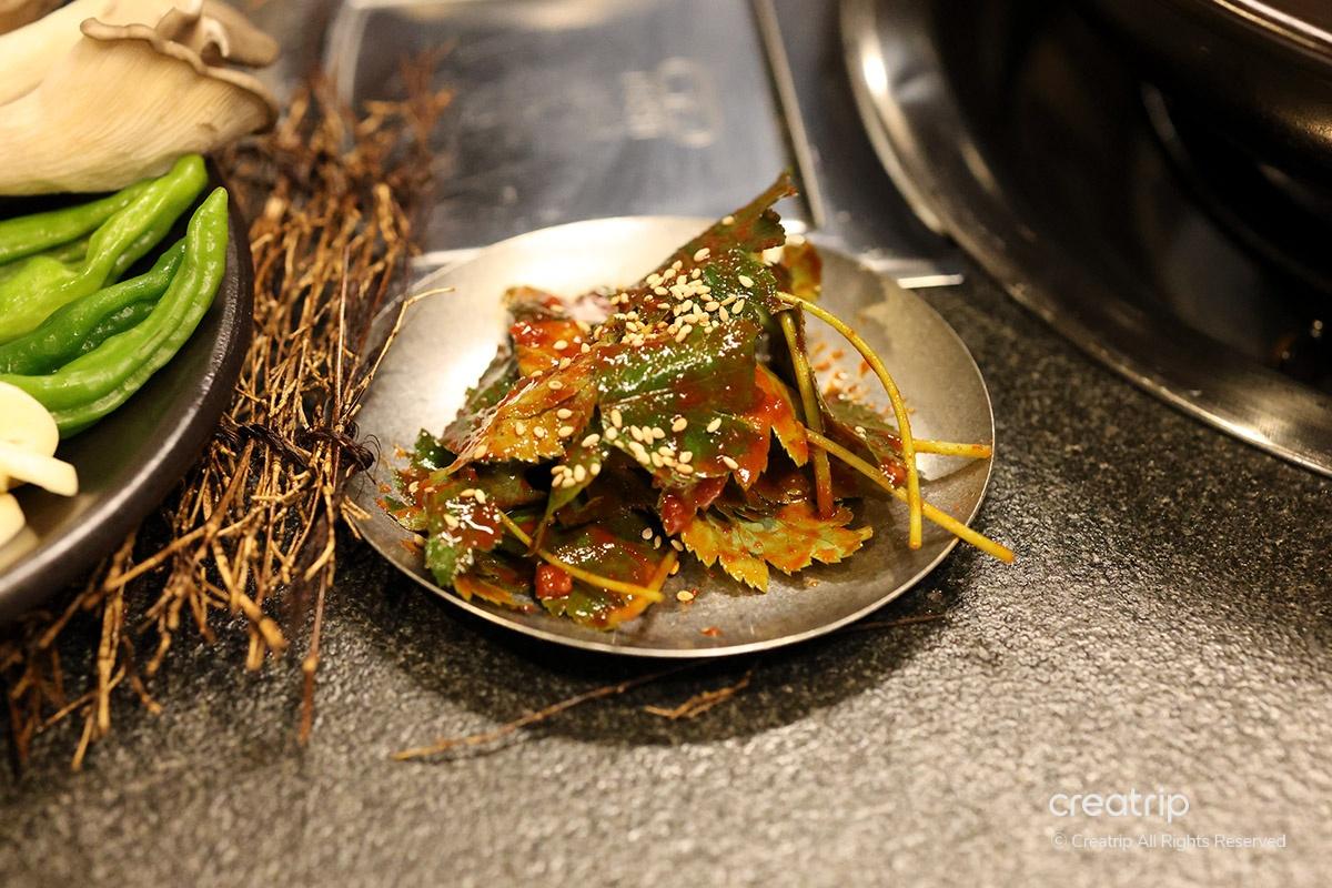 We also recommend trying a combination where you put sesame leaf salad and white kimchi on top of a piece of meat and eat it in one bite.
