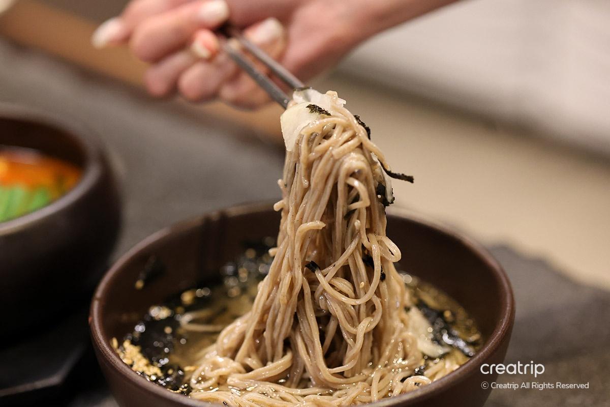Another recommended menu is buckwheat noodles which has a strong sesame oil scent and can be enjoyed with a cold broth for a refreshing taste. In addition to this, there are various menus such as Saeng Bibim Memil Myeon and spicy tofu hot pot, so you can choose according to your preference.