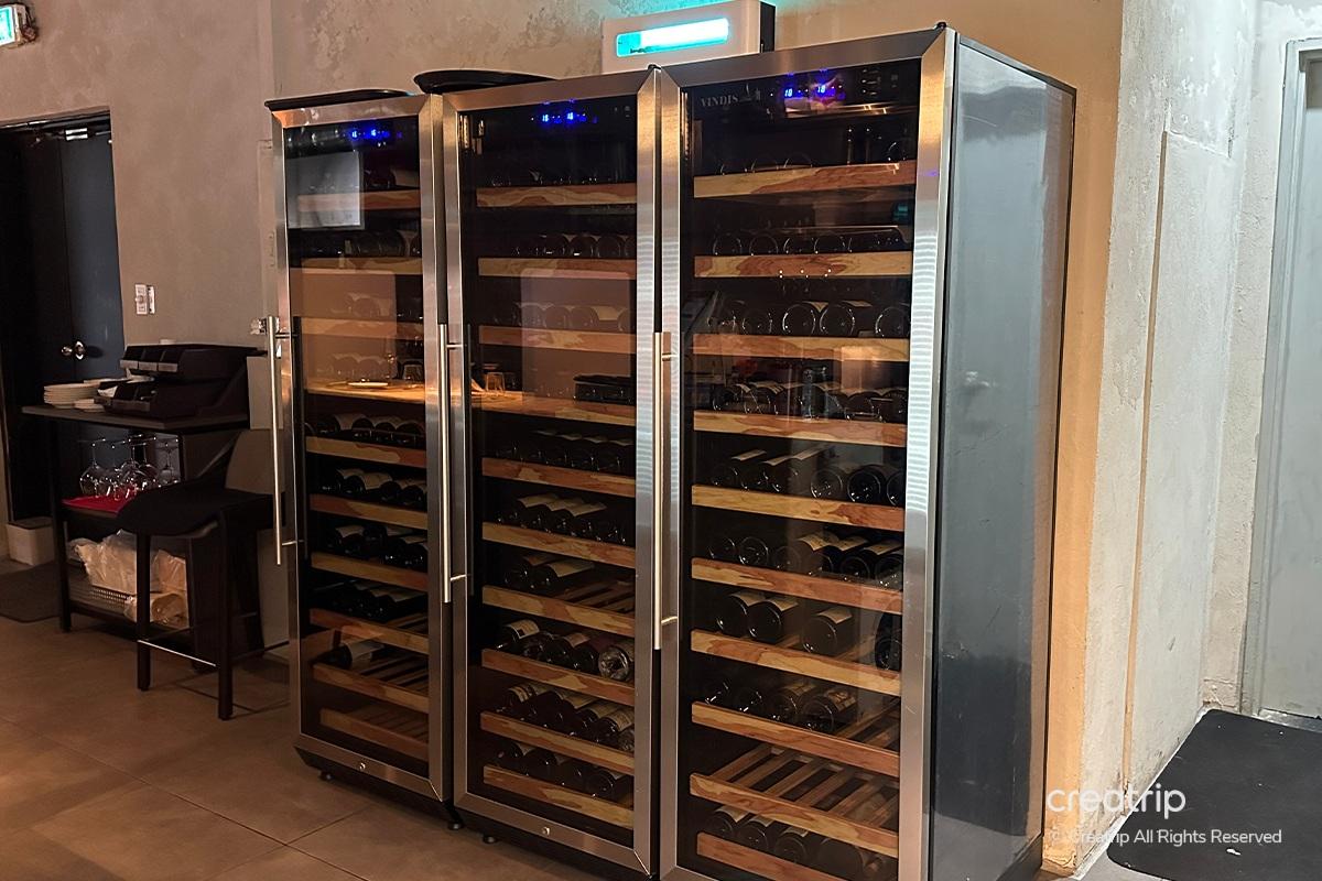 Near the entrance, there's a wine fridge showcasing a variety of wines. They offer a great selection of wines that pair perfectly with the steaks.