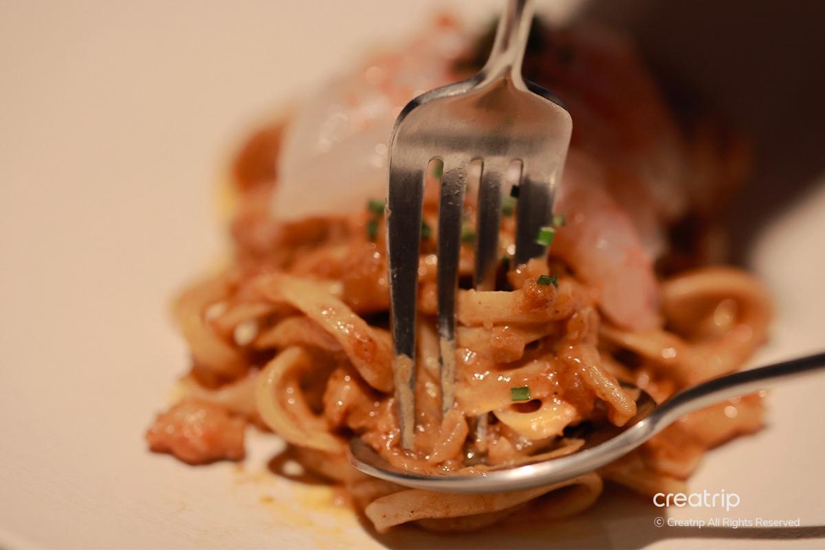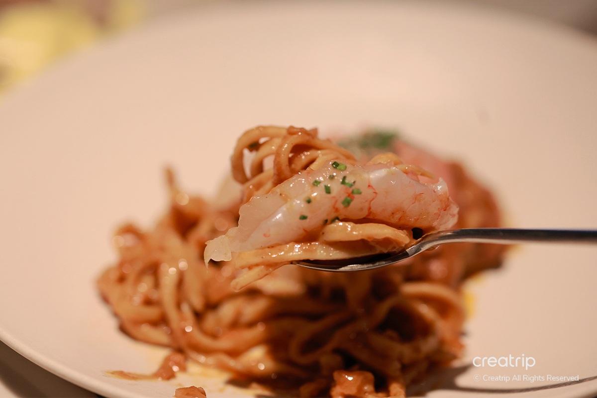 The pasta is topped with plenty of Korean shrimp and features a rich bisque sauce made from shrimp heads and shells. For an extra ocean flavor, you can add sea urchin from Udo, Jeju Island (keep in mind you need to pay an extra for it).