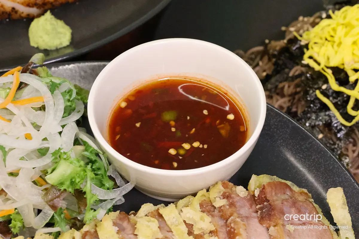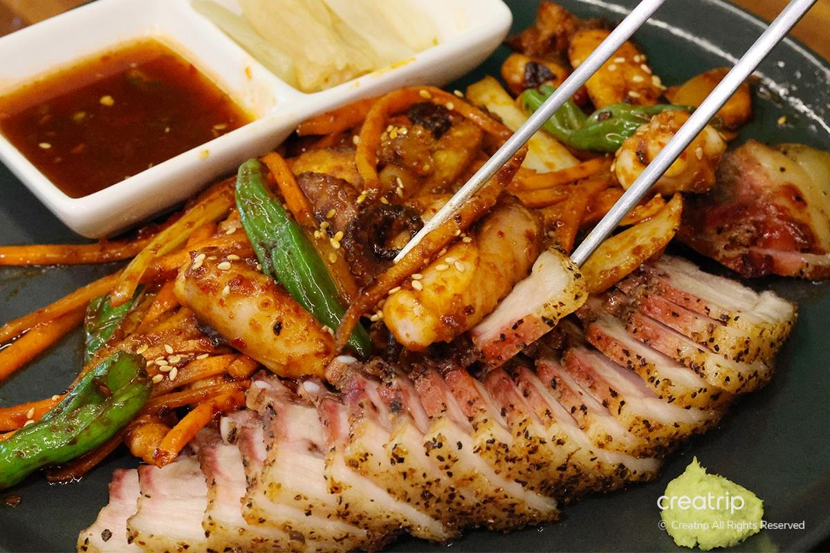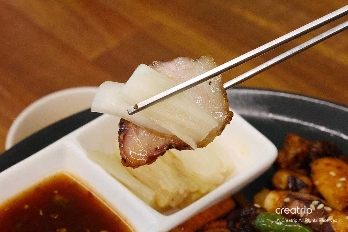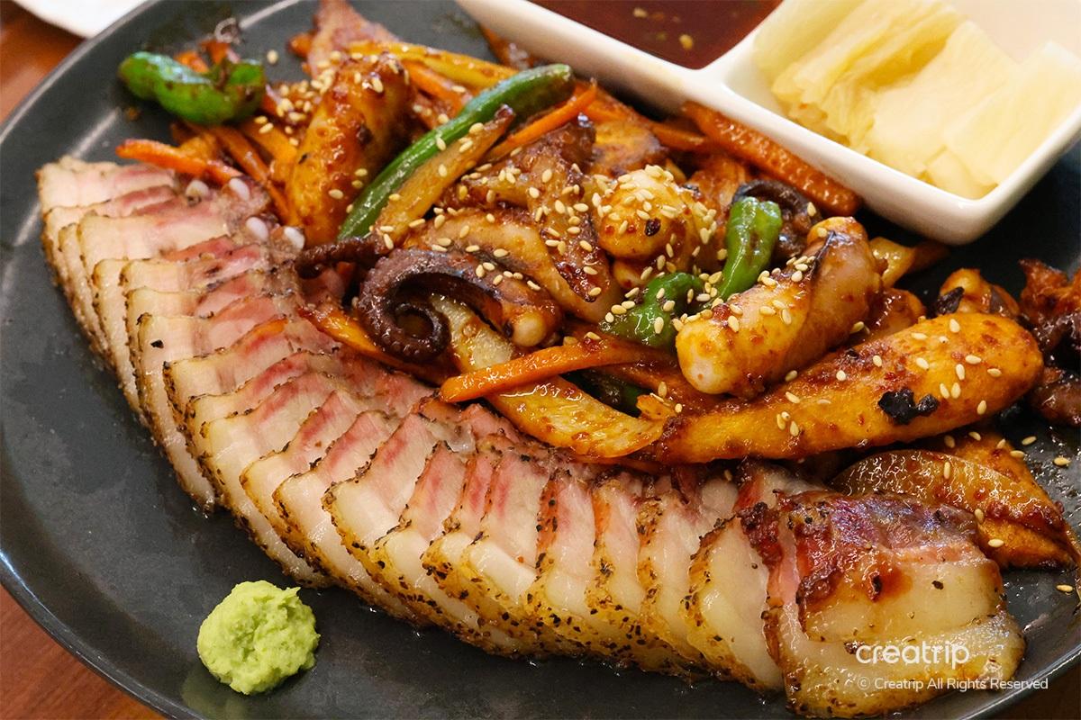 We've ordered the 'Barbecue Octopus Pork Belly' and 'Fried Octopus Pork Belly'. signature menu is big enough for sharing between 2 people. Plus, if you show your Creatrip coupon, you can get a free bowl of buckwheat noodles.