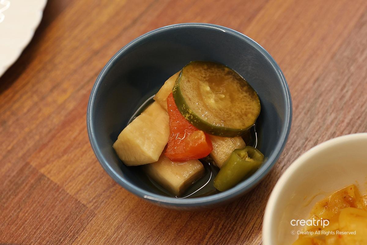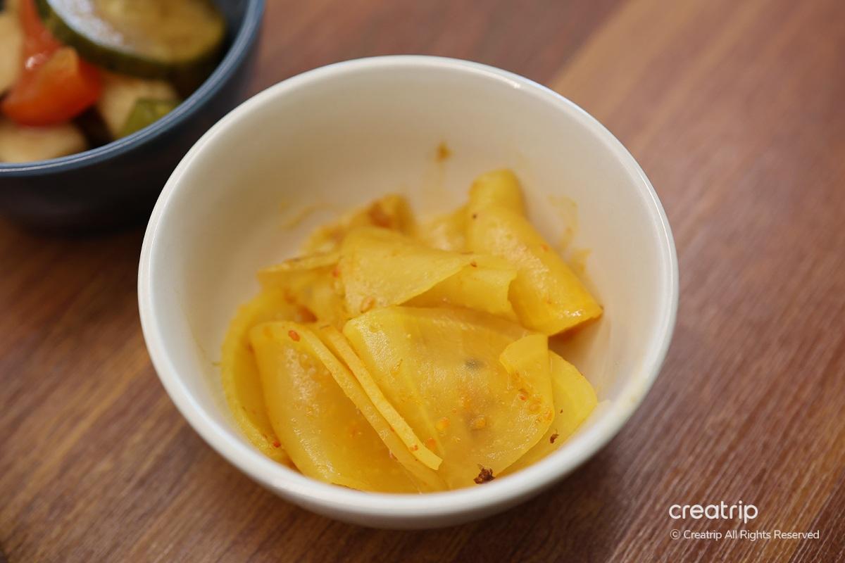 First, I tasted the radish kimchi and pickled side dishes. They are are all homemade, so it was quite delicious with a sweet and sour taste.
