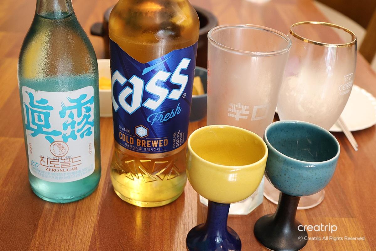 The restaurant also offers a wide selection of Korean alcoholic beverages with cute glasses!