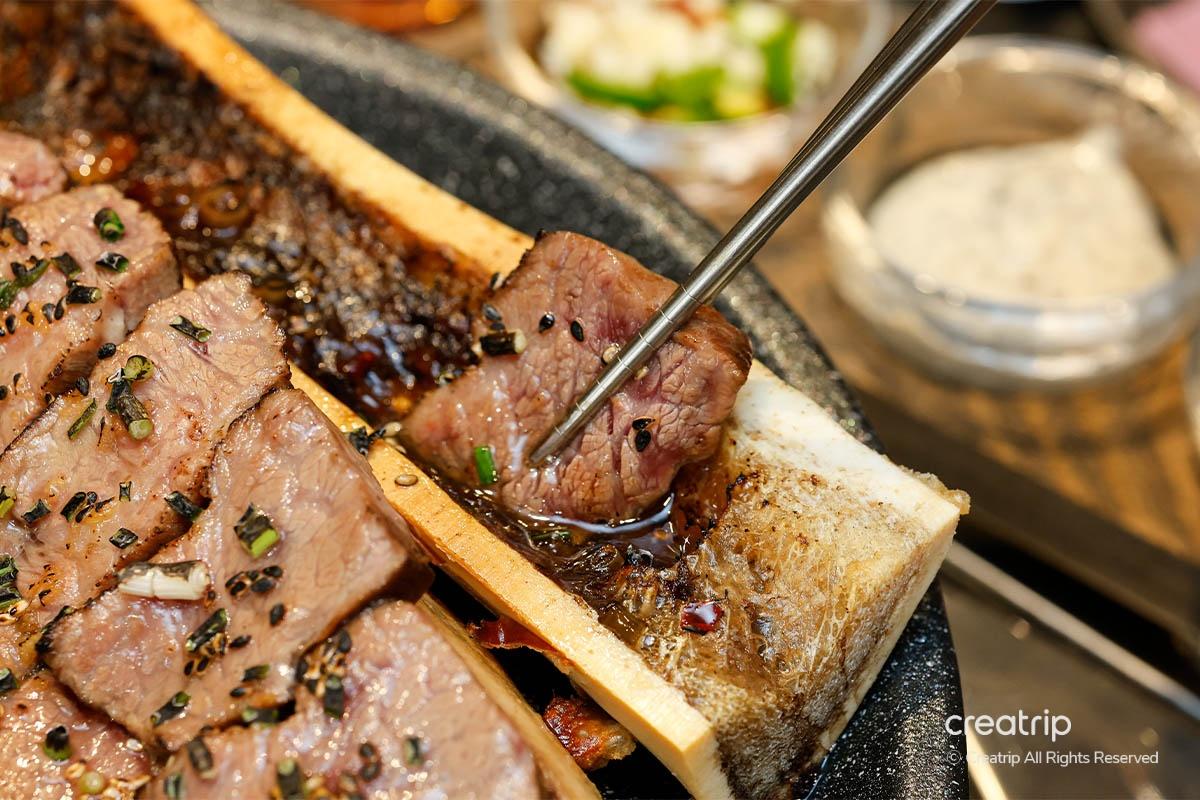 The bone marrow has a rich, savory taste. Paired with the perfectly fatty prime ribs, the smooth, nutty flavor of the marrow elevates the meat's savory taste, making it even more delicious.