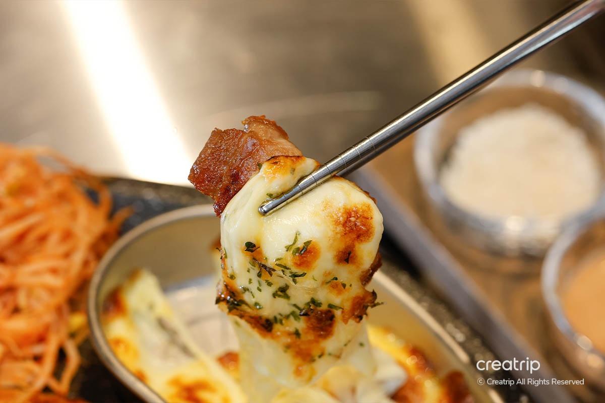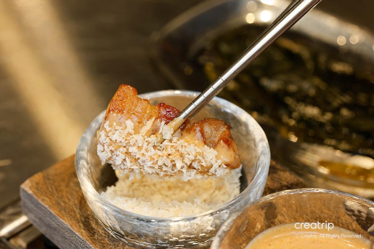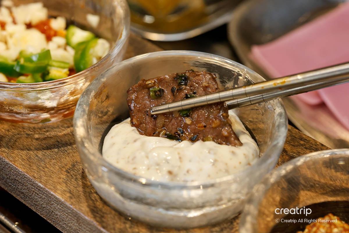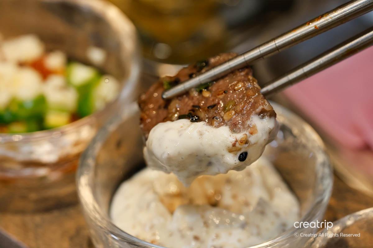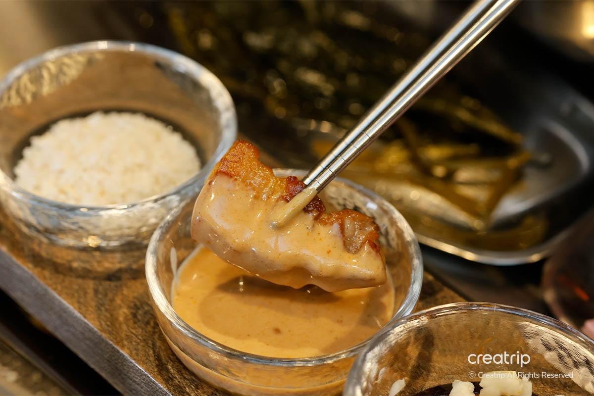 Finally, I tried the samgyeopsal with tonkatsu sauce and breadcrumbs—a combination you don’t usually find at a typical BBQ restaurant. Dipping the pork belly in different sauces each time adds variety, making the meal even more enjoyable.