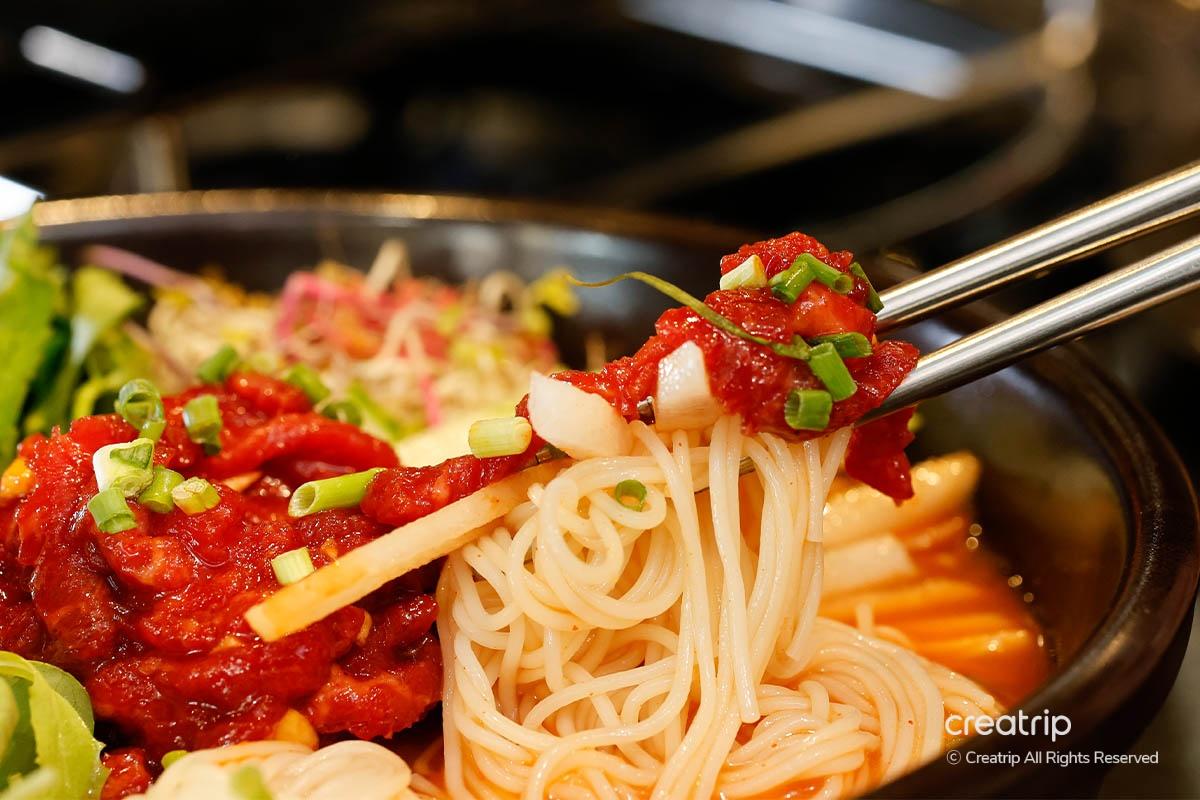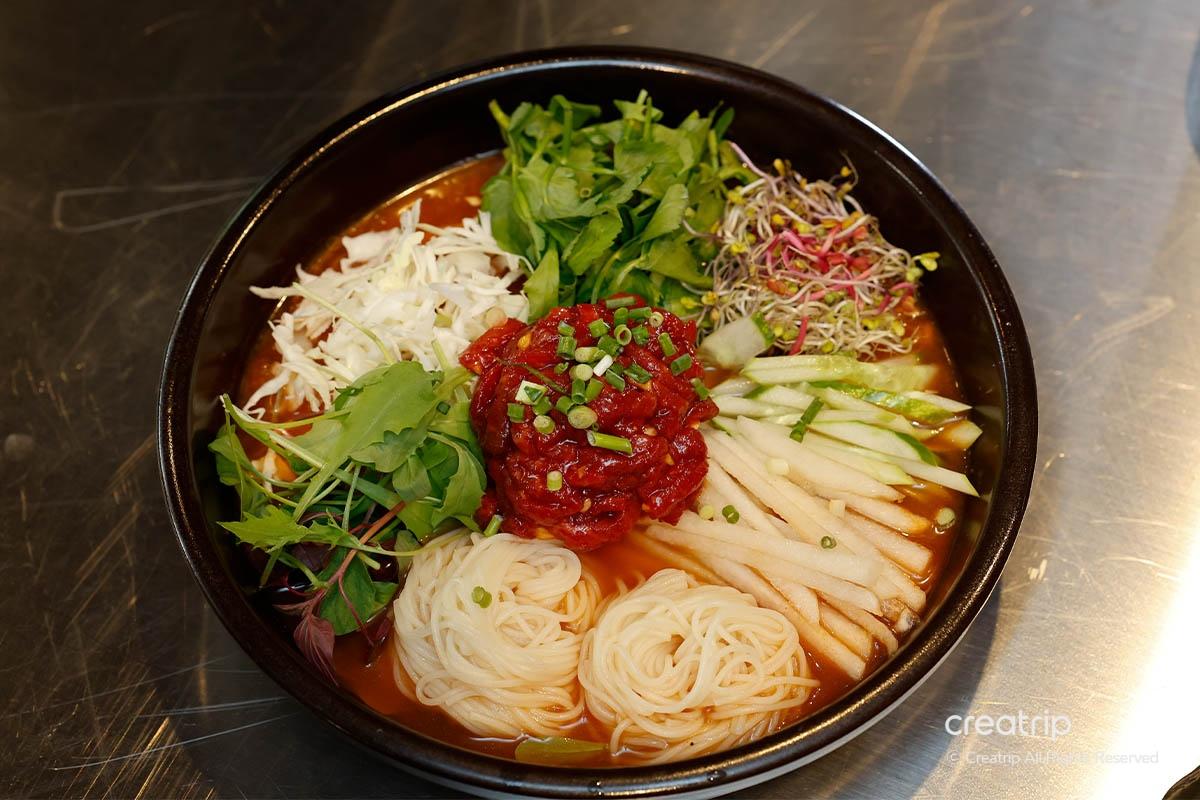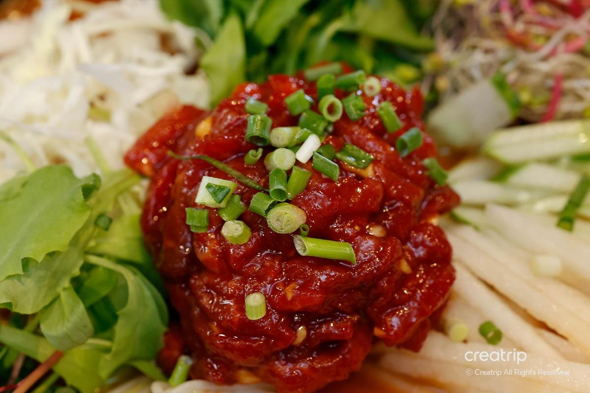 While the meat is delicious, it can feel a bit heavy if you have too much. The refreshing and tangy taste of Yukhoe Mulhoe helps balance it perfectly.