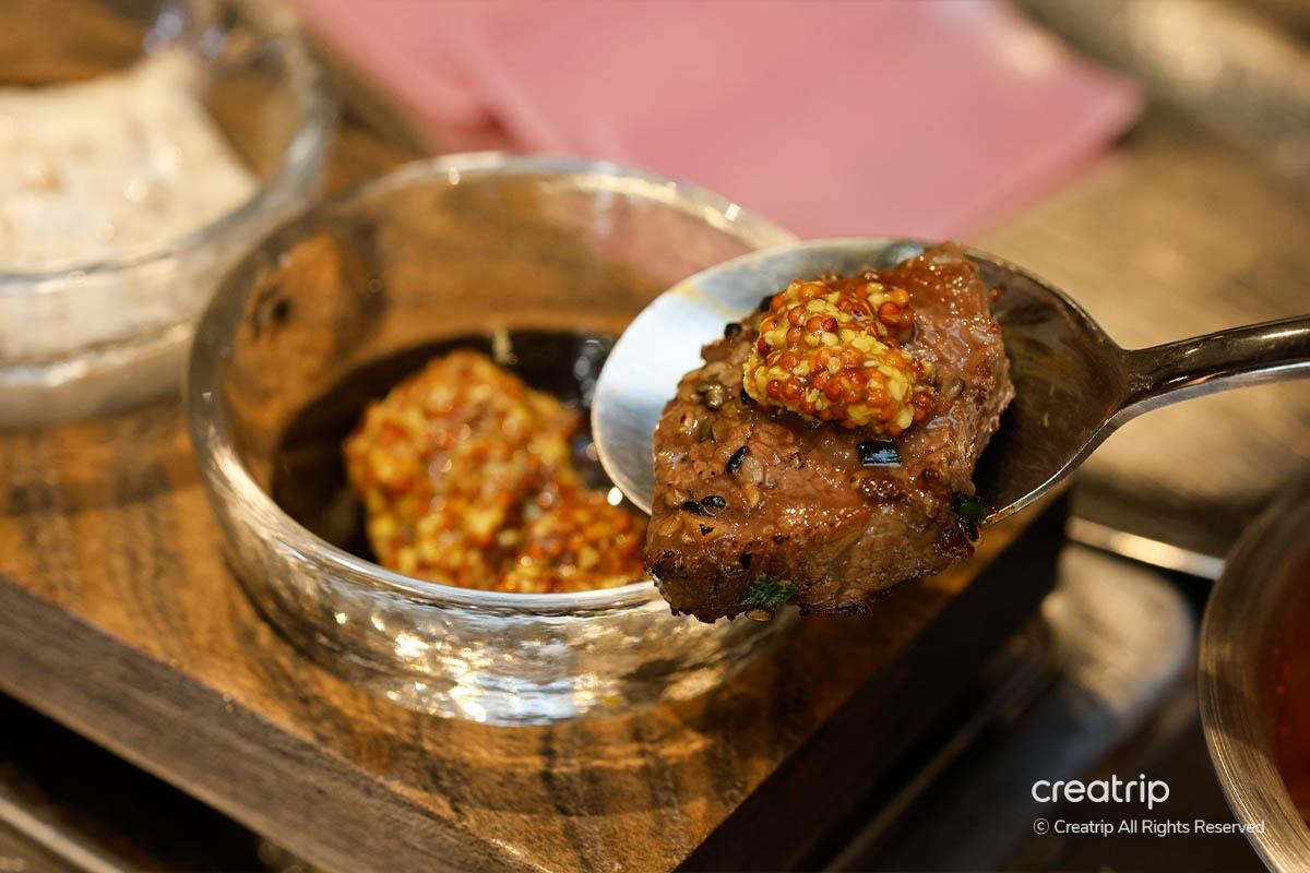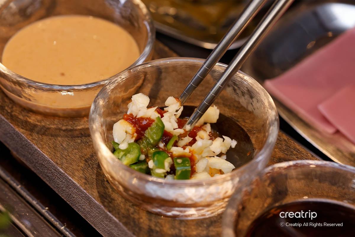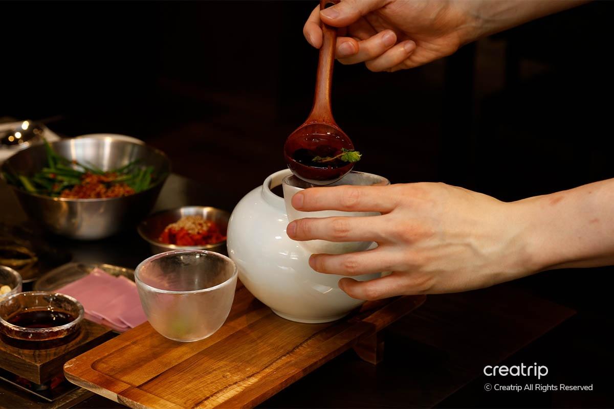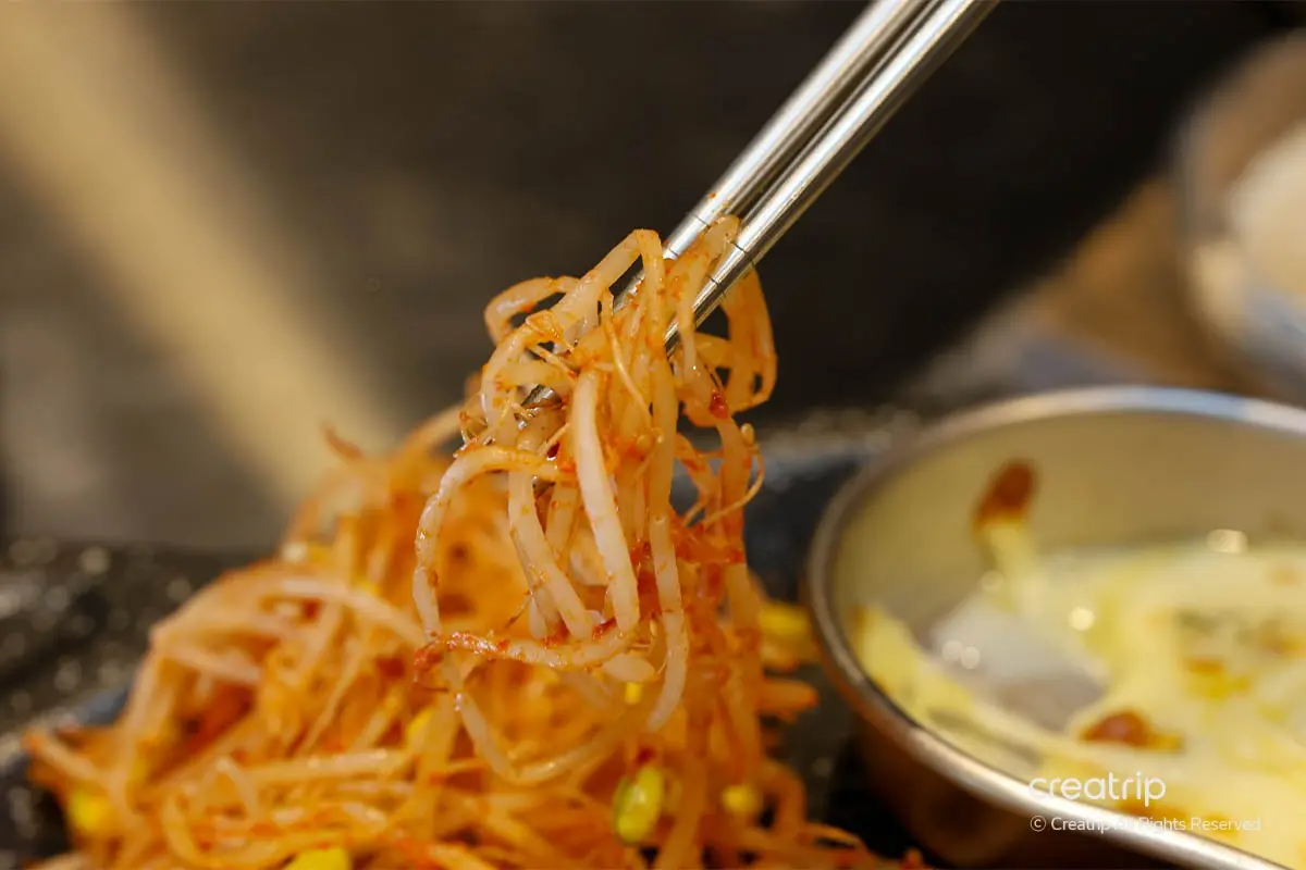 While the meat is delicious, it can feel a bit heavy if you have too much. The refreshing and tangy taste of Yukhoe Mulhoe helps balance it perfectly.