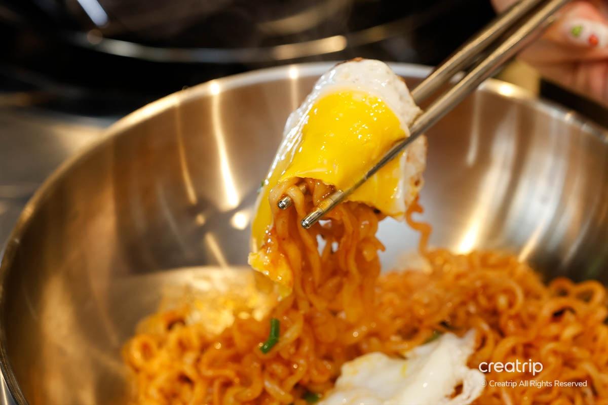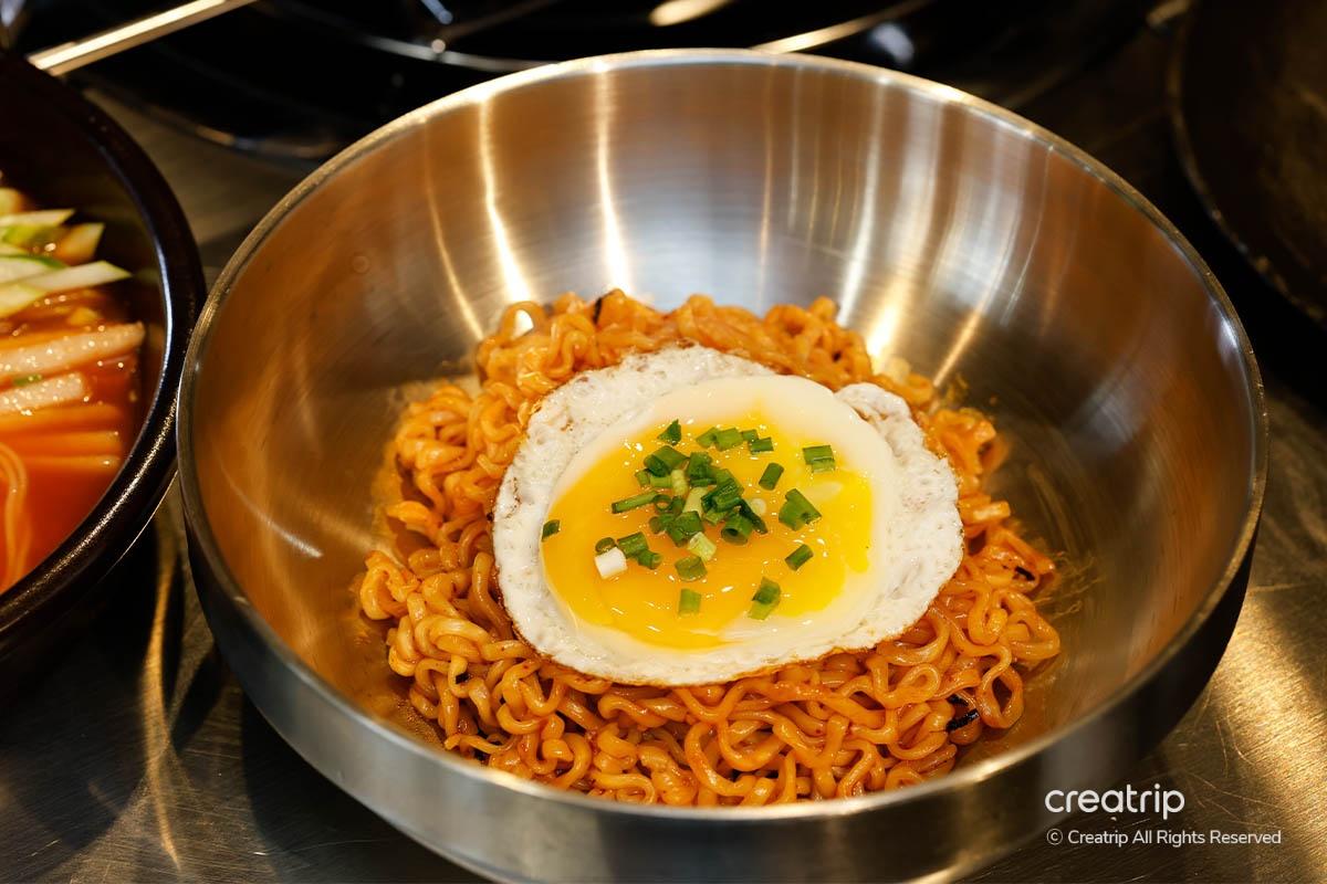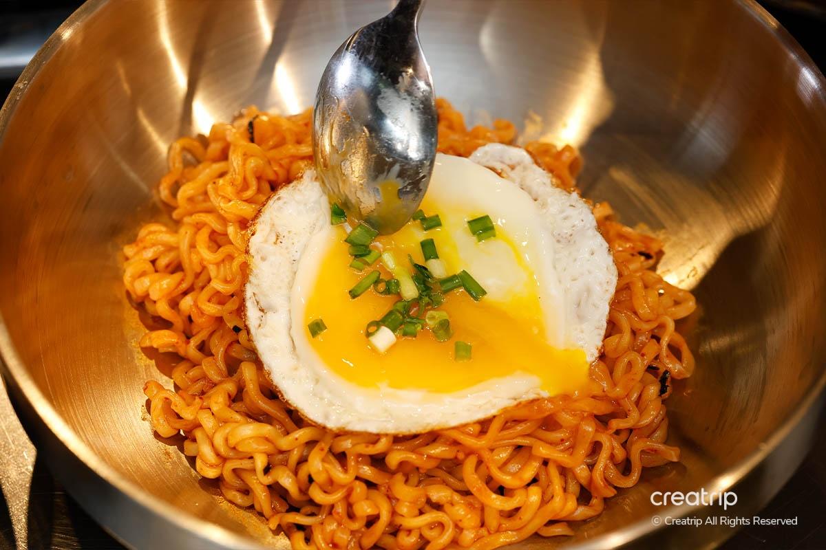 Anyone can enjoy the tasty fire chicken stir-fried noodles. The spicy Buldak noodles paired with a savory, half-cooked fried egg is an unbeatable combination!