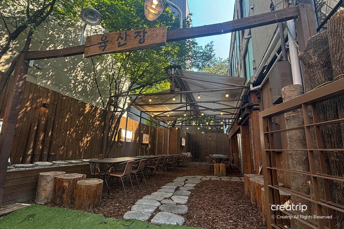 Yuksanjang, just a short walk from Hongik univ. Station, is the perfect spot to experience authentic Korean BBQ. With cozy indoor and outdoor seating and expertly cooked meat, it’s ideal for a relaxed meal. If you're looking for a unique dining experience in a forest cottage-like setting, Yuksanjang is the place to go!
