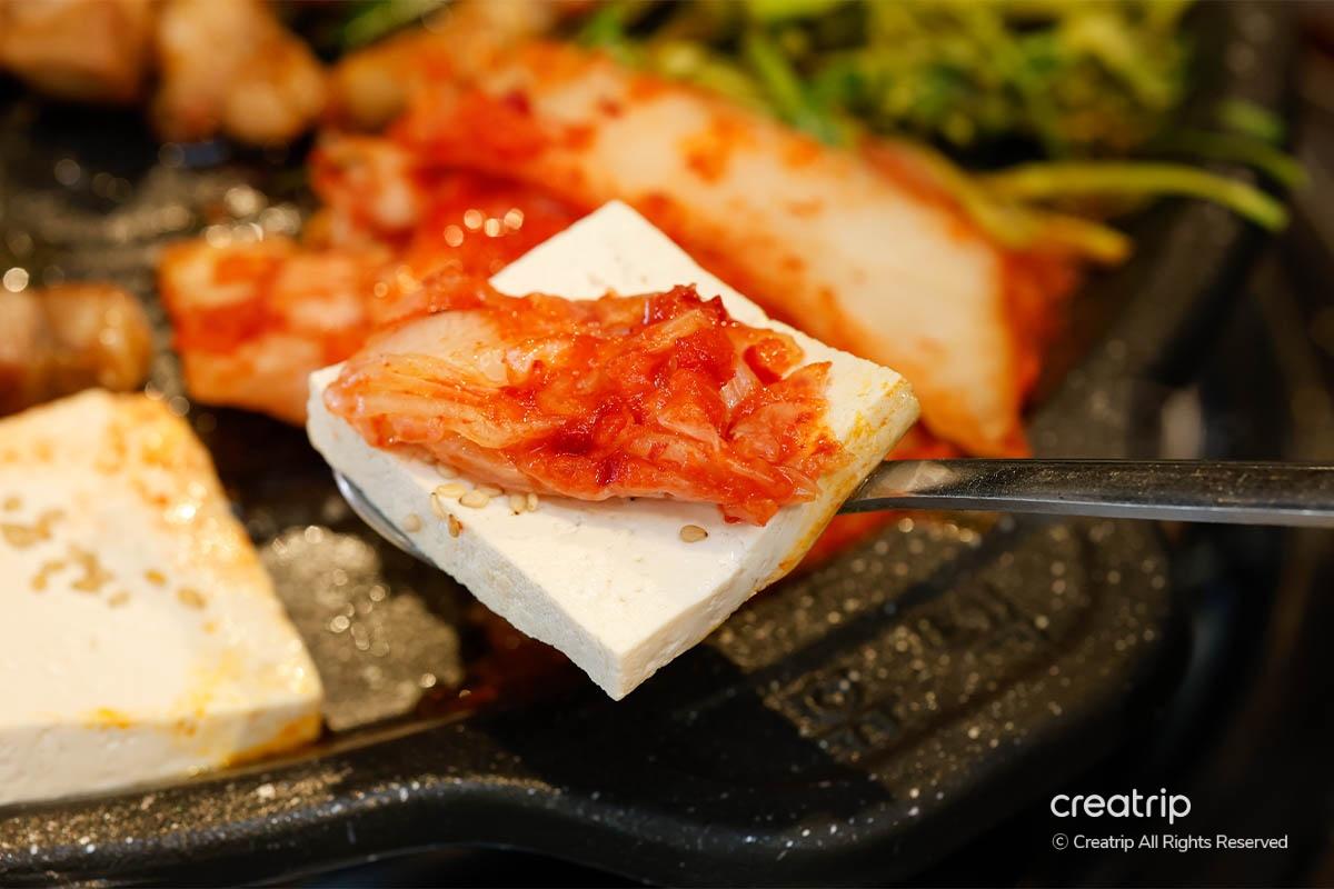 Be sure to try the combination of tofu and kimchi—it's a must!