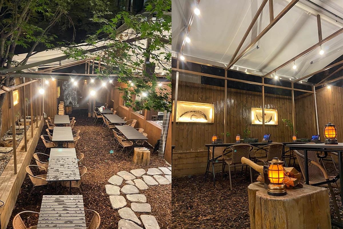 Another charming aspect of Yuksanjang is the terrace, which makes you feel like you're at a camping site in the city. If you visit in the evening, the atmosphere becomes even more romantic.