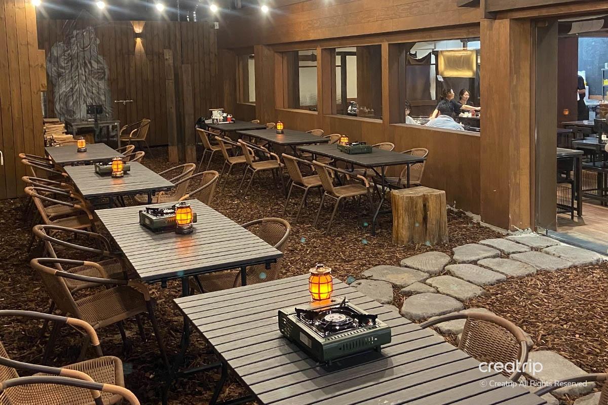 Want to enjoy cooking and eating meat in a camping-like setting in the middle of Hongdae? At Yuksanjang, you can experience a meal that's not only delicious but also visually exciting with its unique atmosphere!