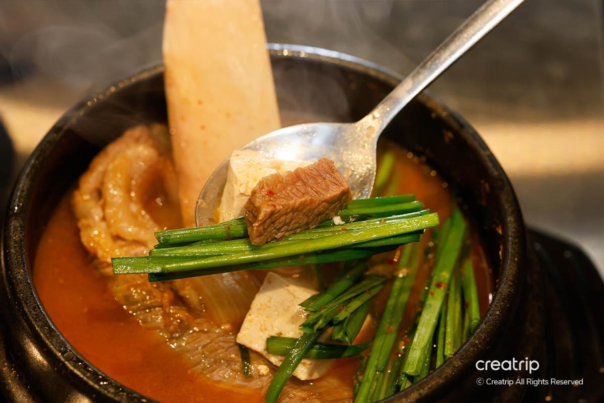This special Premium Galbi Doenjang Jjigae is a must-try at a Korean BBQ restaurant. The rich juices from the galbi blend perfectly with the savory soy bean paste.