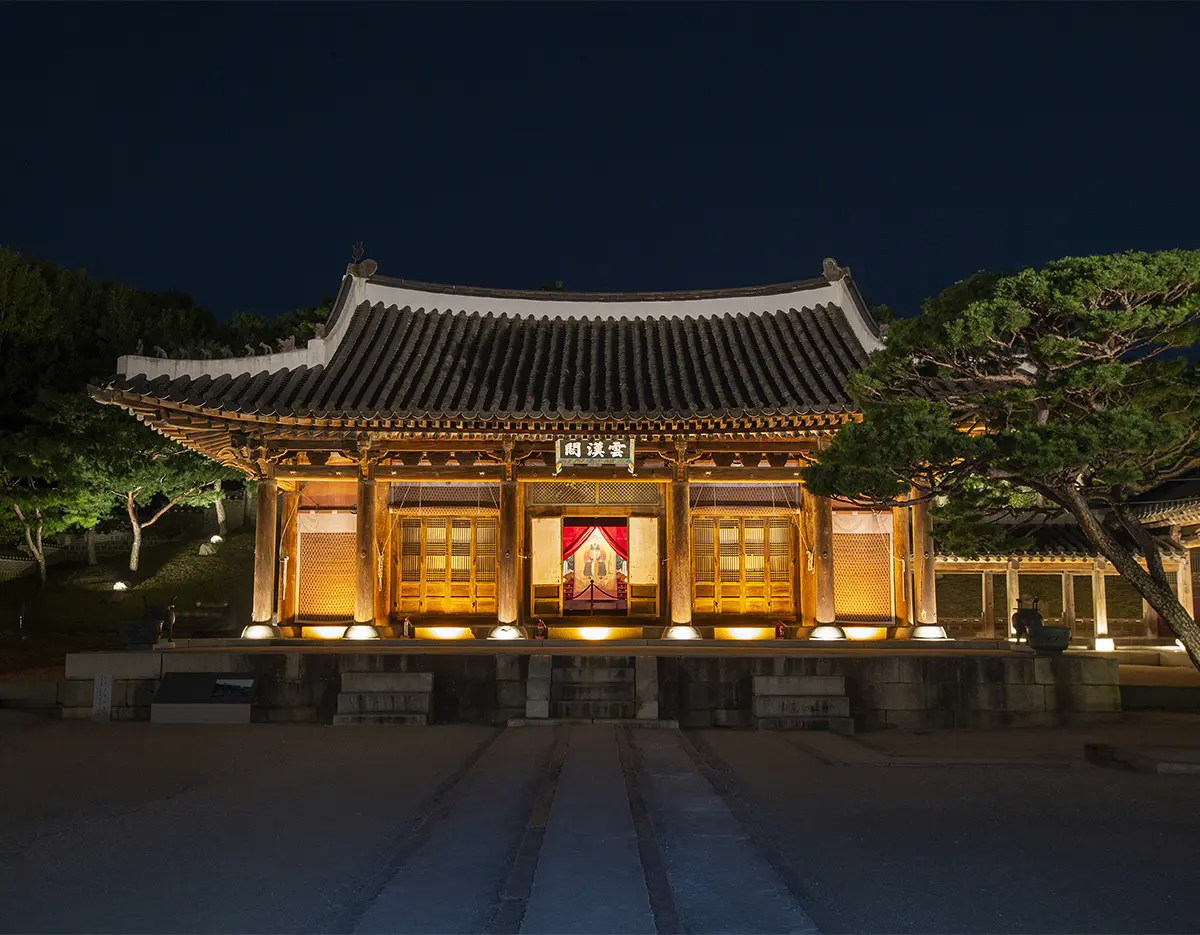 Immersive art performance 'Hwaryeong' at Hwaryeongjeon, the Royal Ancestral Shrine of King Jeongjo, is a night spectacle where visitors can experience the story of King Jeongjo and Hwaryeongjeon through immersive sound and light.