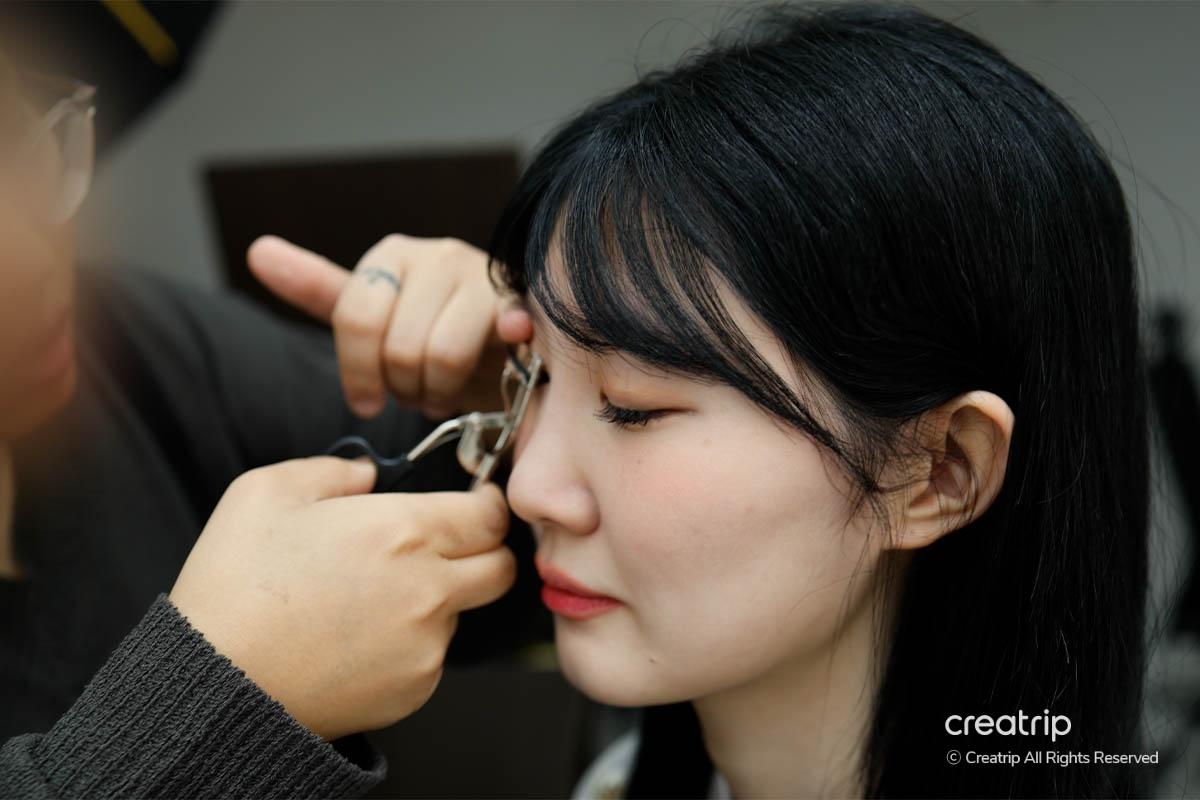 After applying eyeshadow, the artist used an eyelash curler to curl the lashes. Her skill was impressive, so there was no worry about pinching or discomfort during the process.