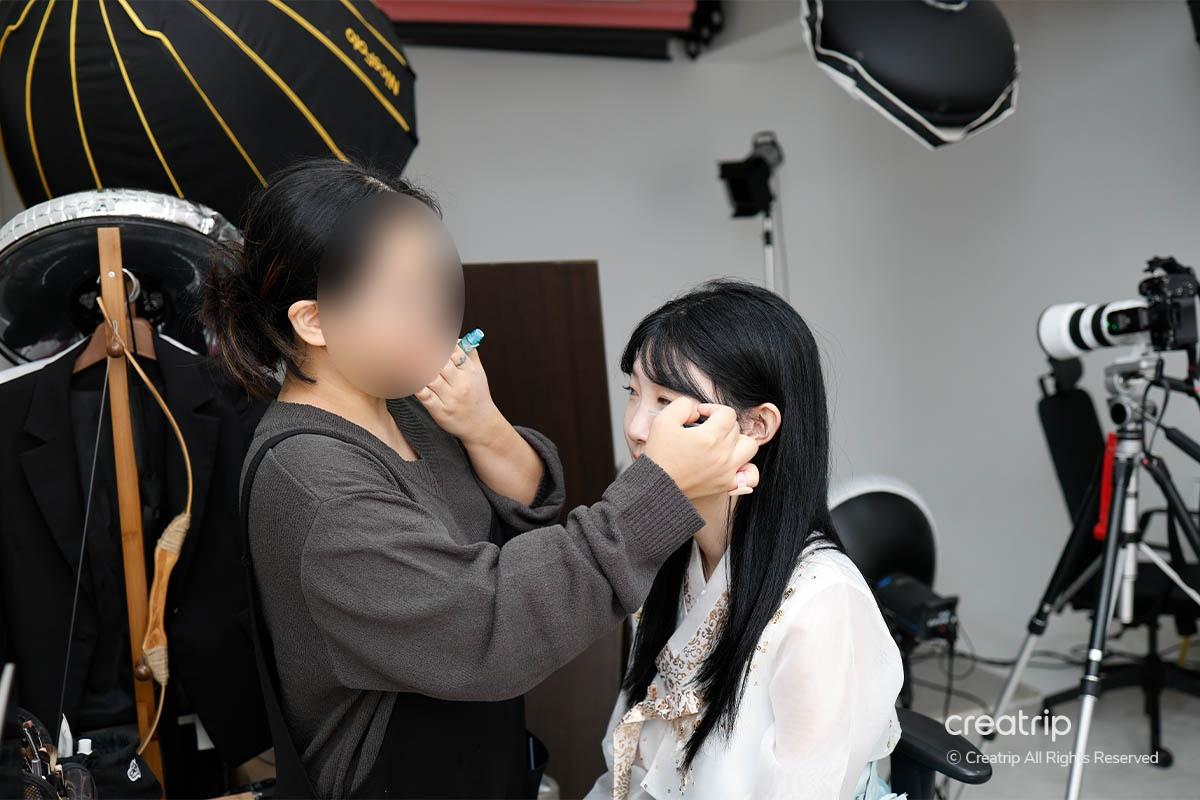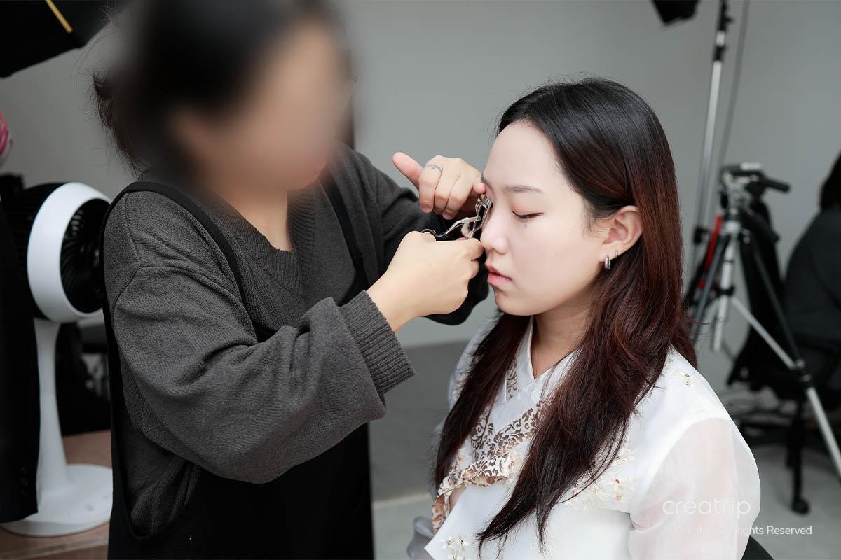 The on-site makeup program does not include hair styling. We recommend finding a rental service for traditional Korean attire (hanbok) that includes hairstyling.
