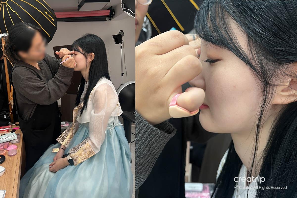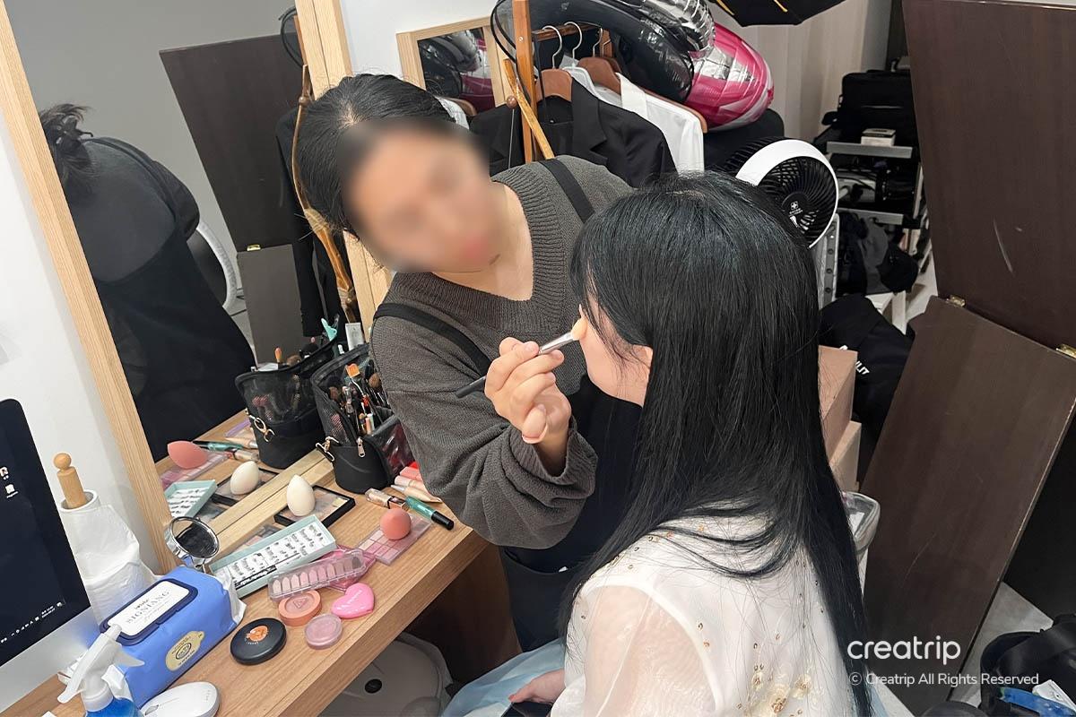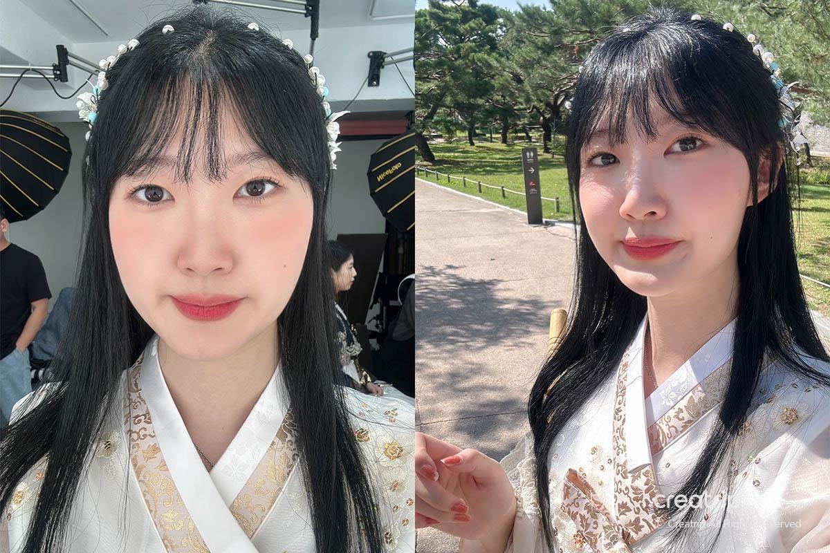 The Korean-style makeup is complete! Although three of us received makeup, each session was quick, making the process efficient and satisfying. I also appreciated how the makeup was tailored to match each person’s unique personality and style.