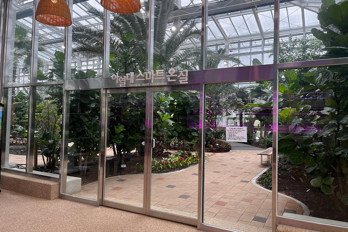 Inside the greenhouse, there’s an aquarium at the entrance with vegetables growing above it, and even the fish seemed curious as they swam by the entry. The greenhouse features subtropical plants rarely seen in Korea, and stepping in from the rain, the warmth inside felt especially welcoming.