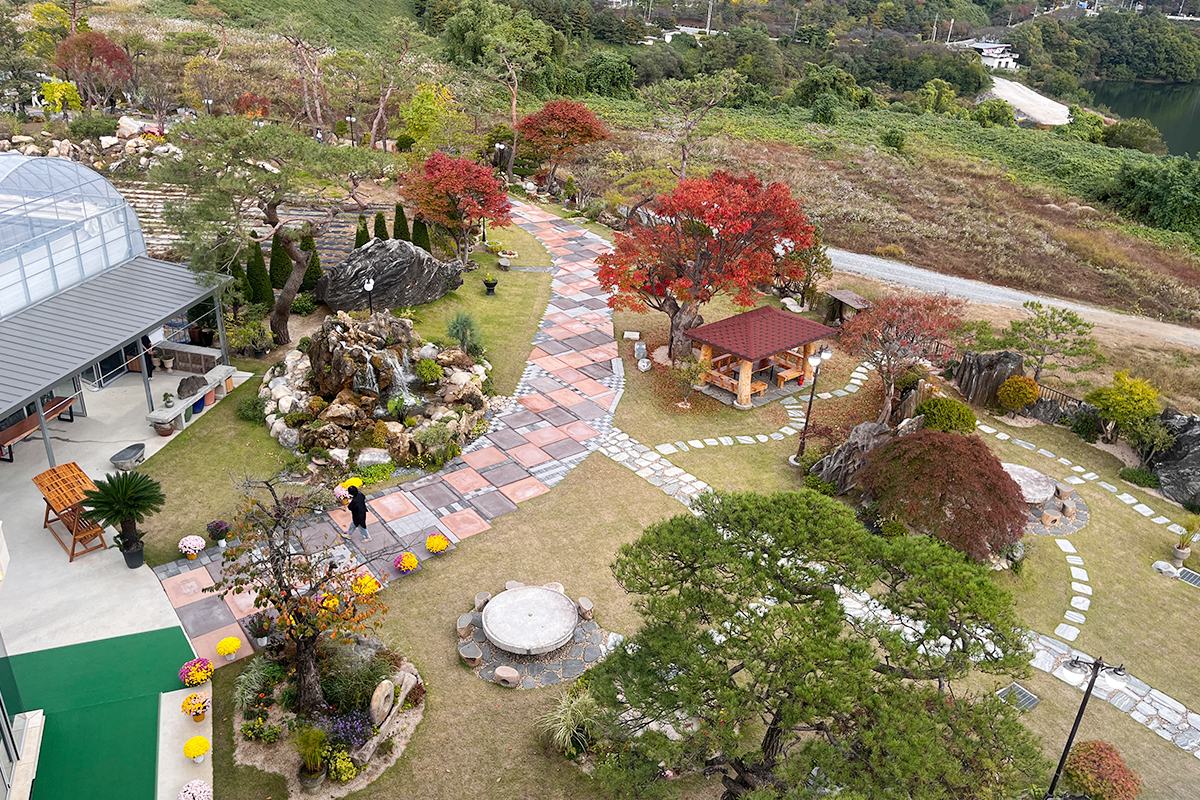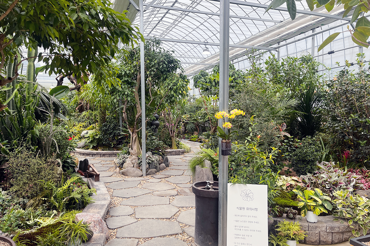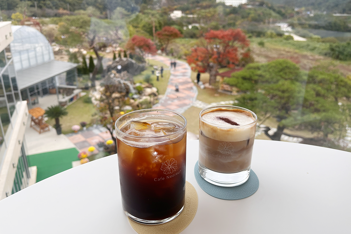 The landscaping at Cafe Neureun is truly beautiful—no surprise, as the owner is a landscaping expert! The spacious 2400-pyeong area is filled with plants, and there’s a conservatory on the right where you can stroll and explore while waiting for your drink.