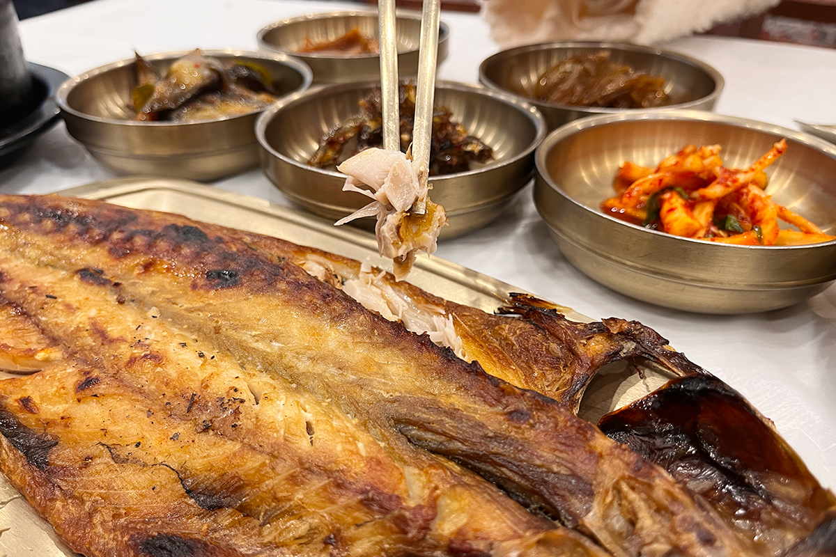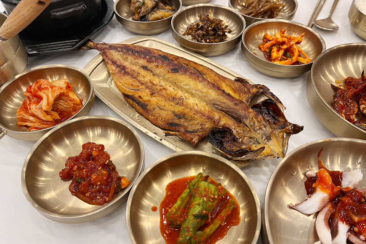 The meal includes over 10 traditional Korean side dishes and grilled mackerel. I was amazed as the side dishes just kept coming!