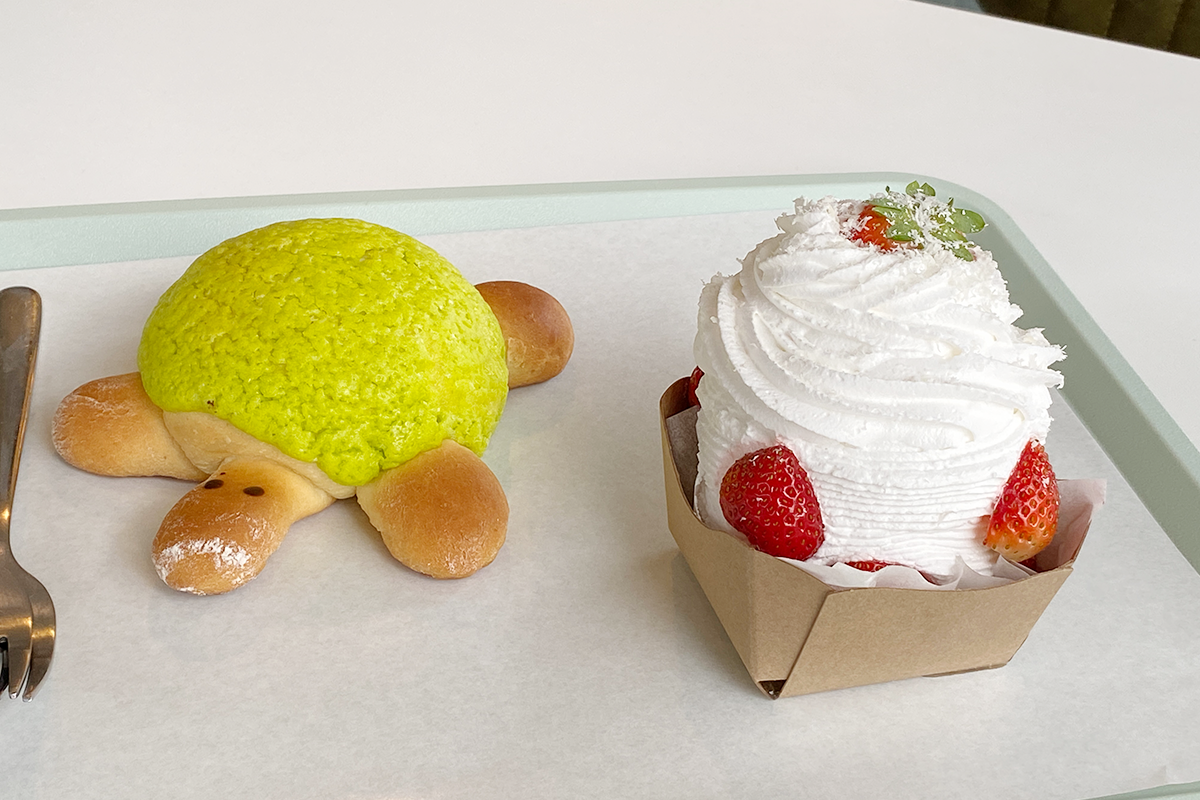 I tried the strawberry kaymak cake and turtle melon bread—the melt-in-your-mouth cream with the crispy outside and chewy inside was amazing. They were so good that I went back before leaving Jecheon to stock up on more!