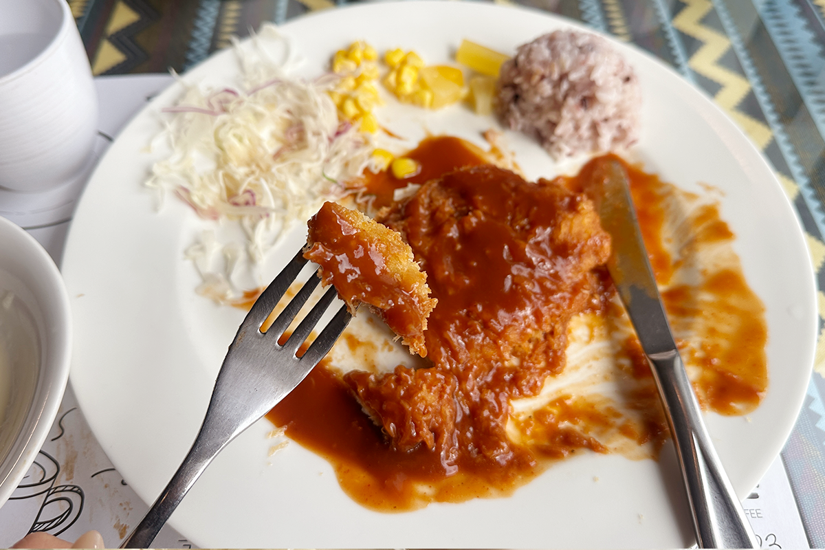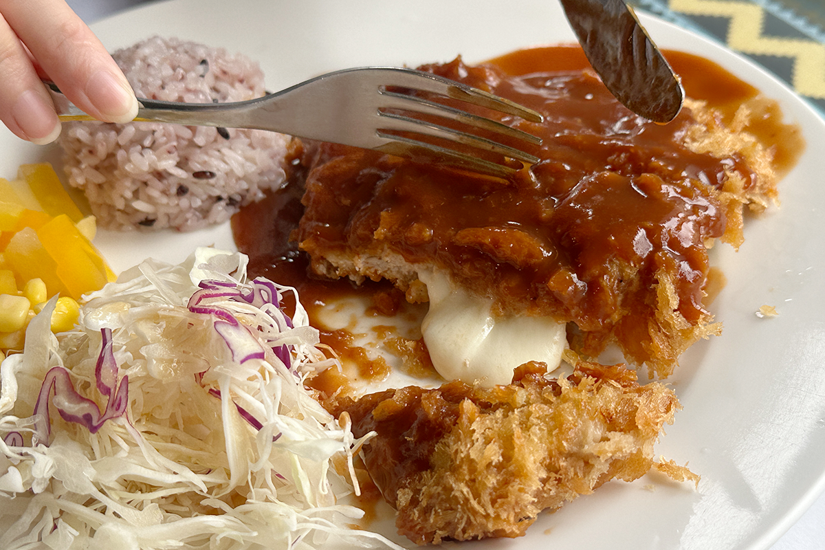You can pick a mild or spicy sauce—the spicy one has a touch of red pepper but isn’t too hot, so give it a try if you like a bit of heat! At around $10, it’s a great deal, and you can even get a pork cutlet refill for a filling meal.