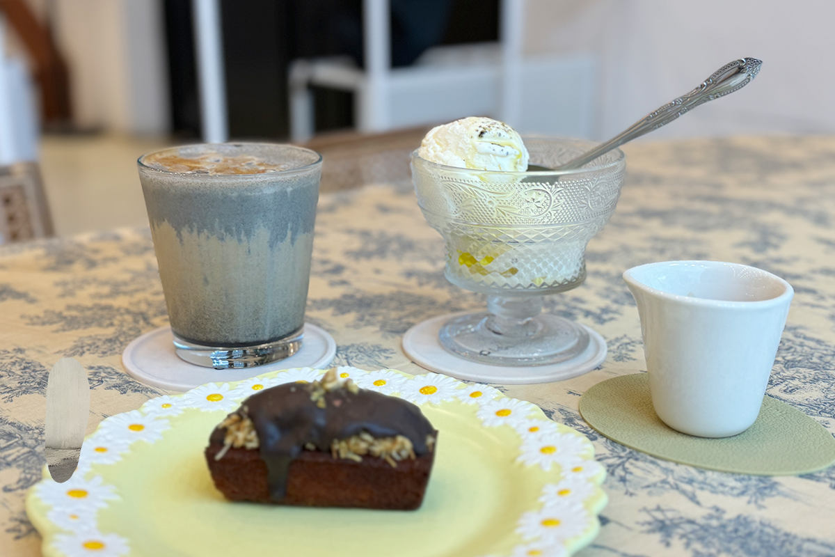 I tried the signature 'Gongguri Latte,' along with an affogato and some desserts. The black sesame had a nutty, rich flavor with a unique texture. The cake was sweet and delicious, but since the dessert menu changes monthly, it’s worth checking what’s available before you go!