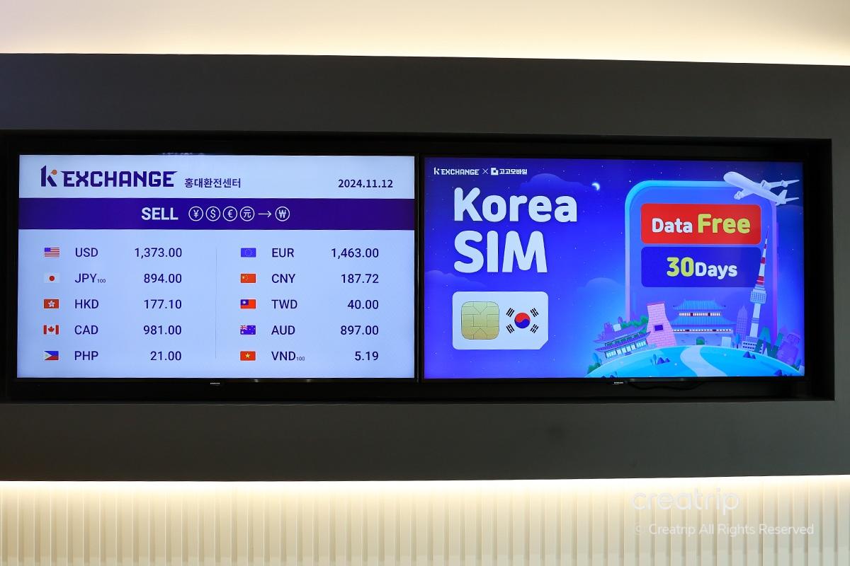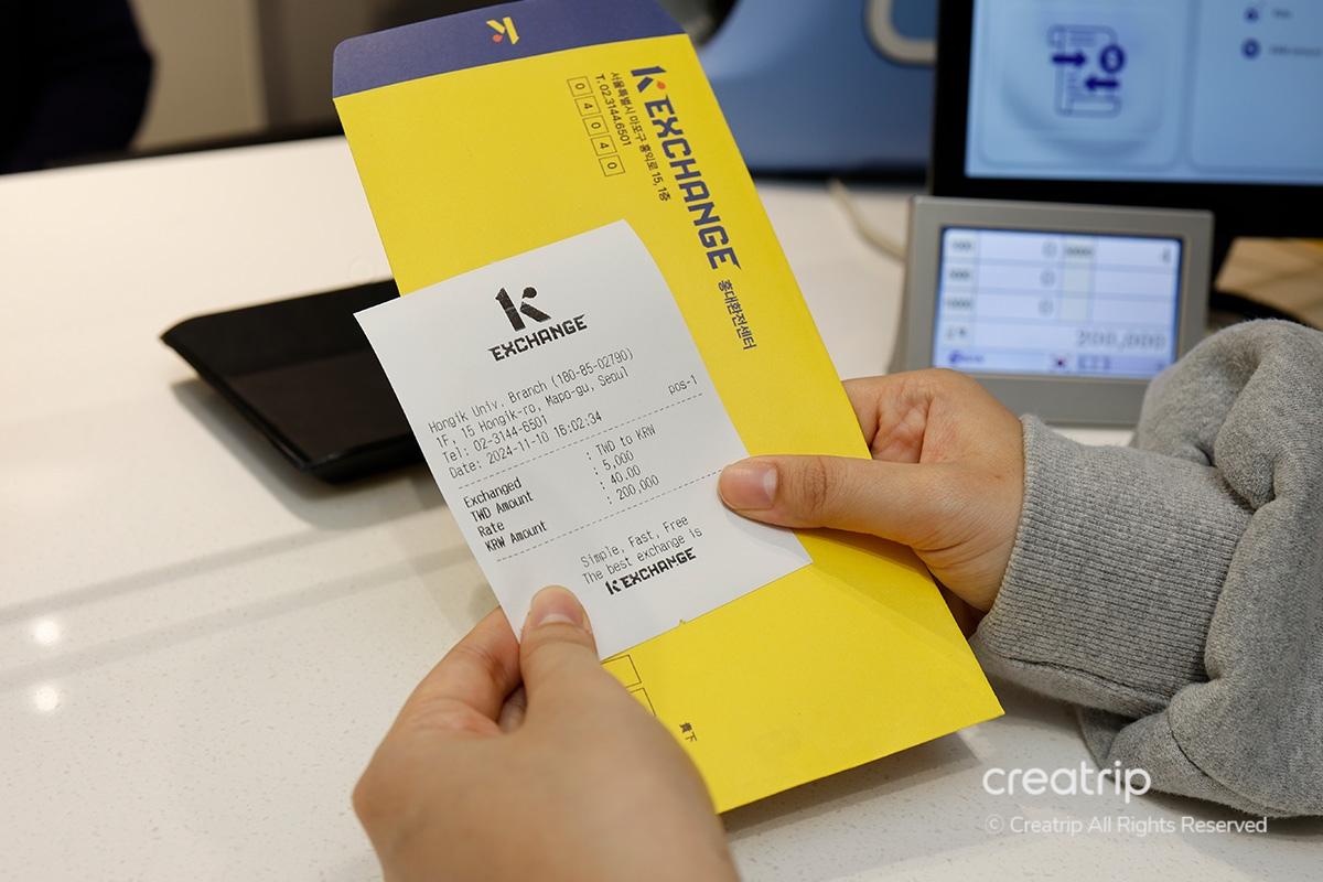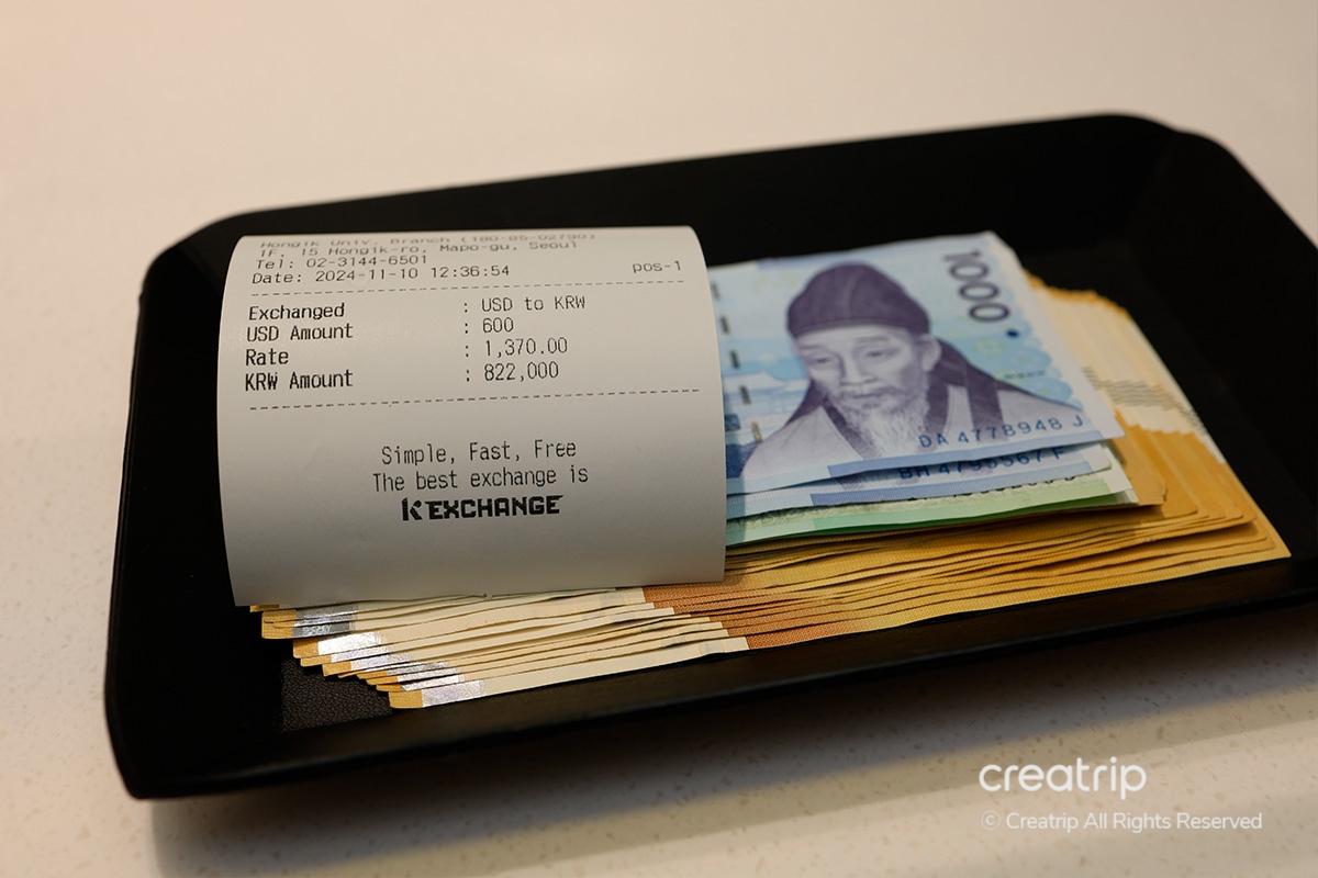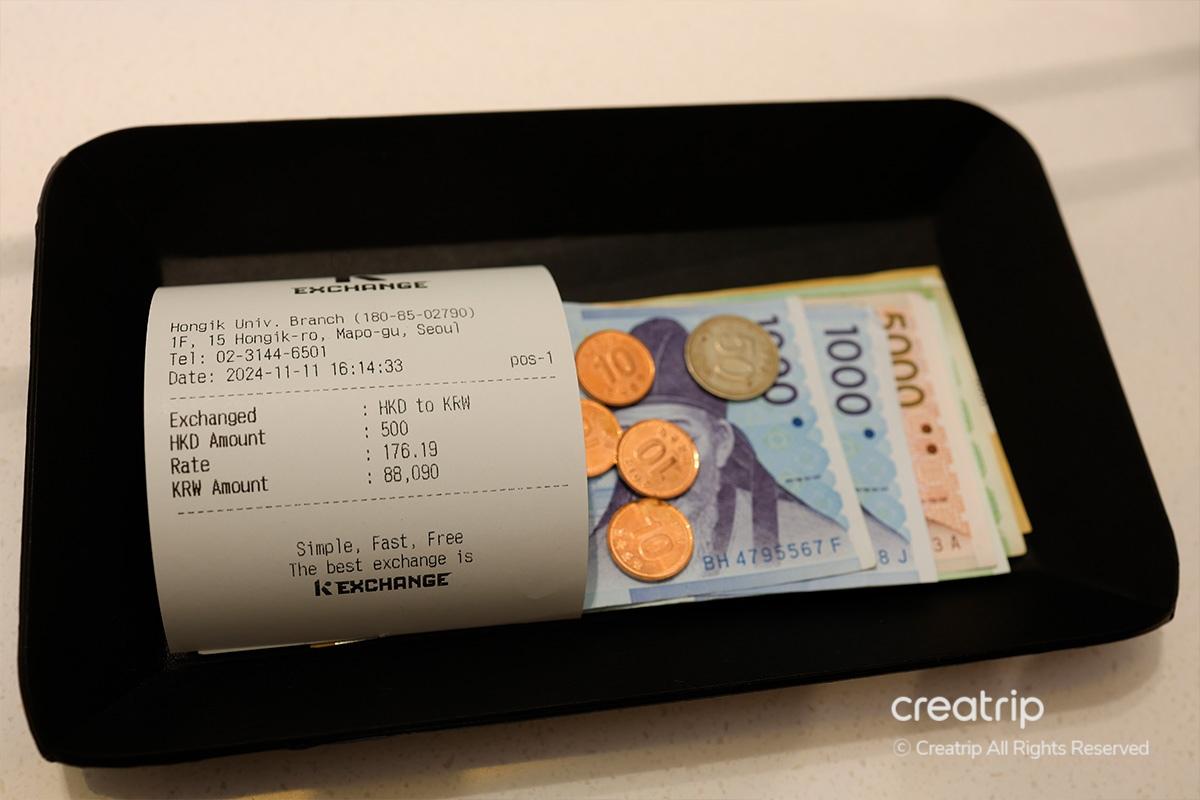 When traveling, you'll often need to exchange currency. Visit 'K Exchange Hongdae Branch,' conveniently located just 5 minutes from Hongik Univ. Station. With the special Creatrip exchange rate coupon, you can enjoy great rates and save money.