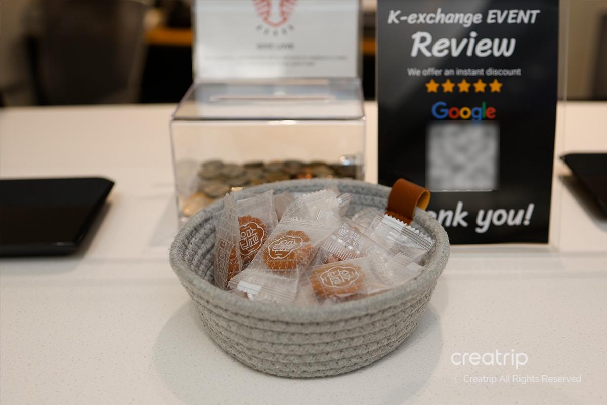 Mini yakgwa (traditional Korean dessert) is also provided free of charge at the front desk, so don't forget to enjoy! If you are looking for a fast, easy, and simple place to exchange currency near Hongdae, we recommend visiting 'K-Exchange Hongdae'!