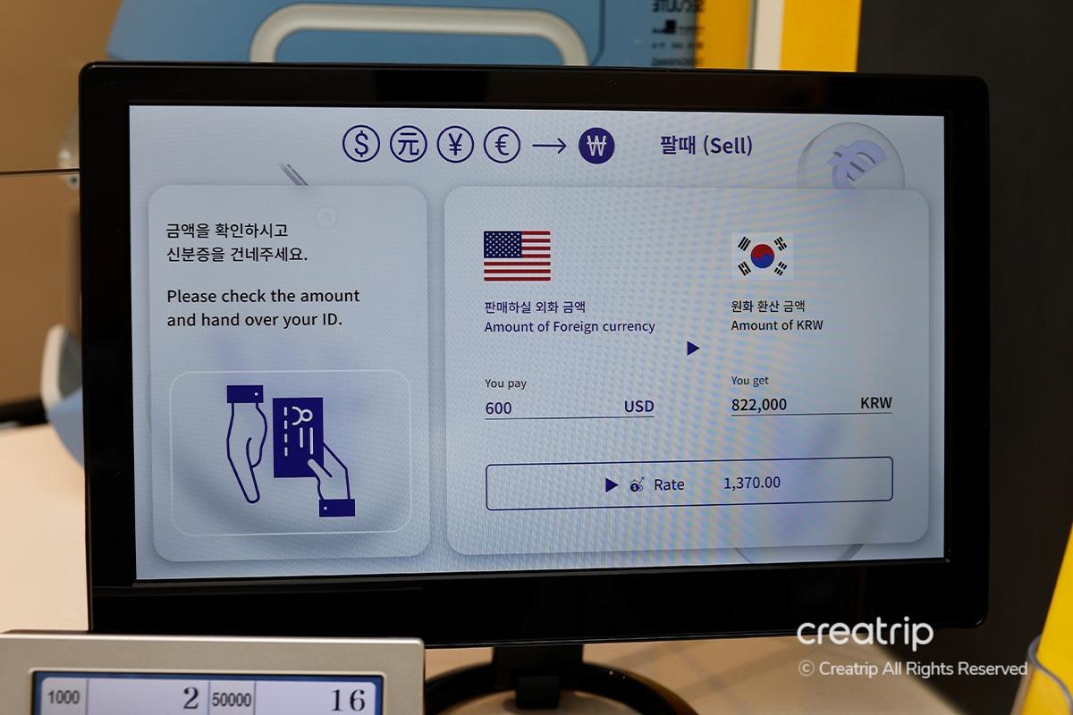 Then, please use the machine inside the counter to count the bills and prepare the equivalent amount in Won.