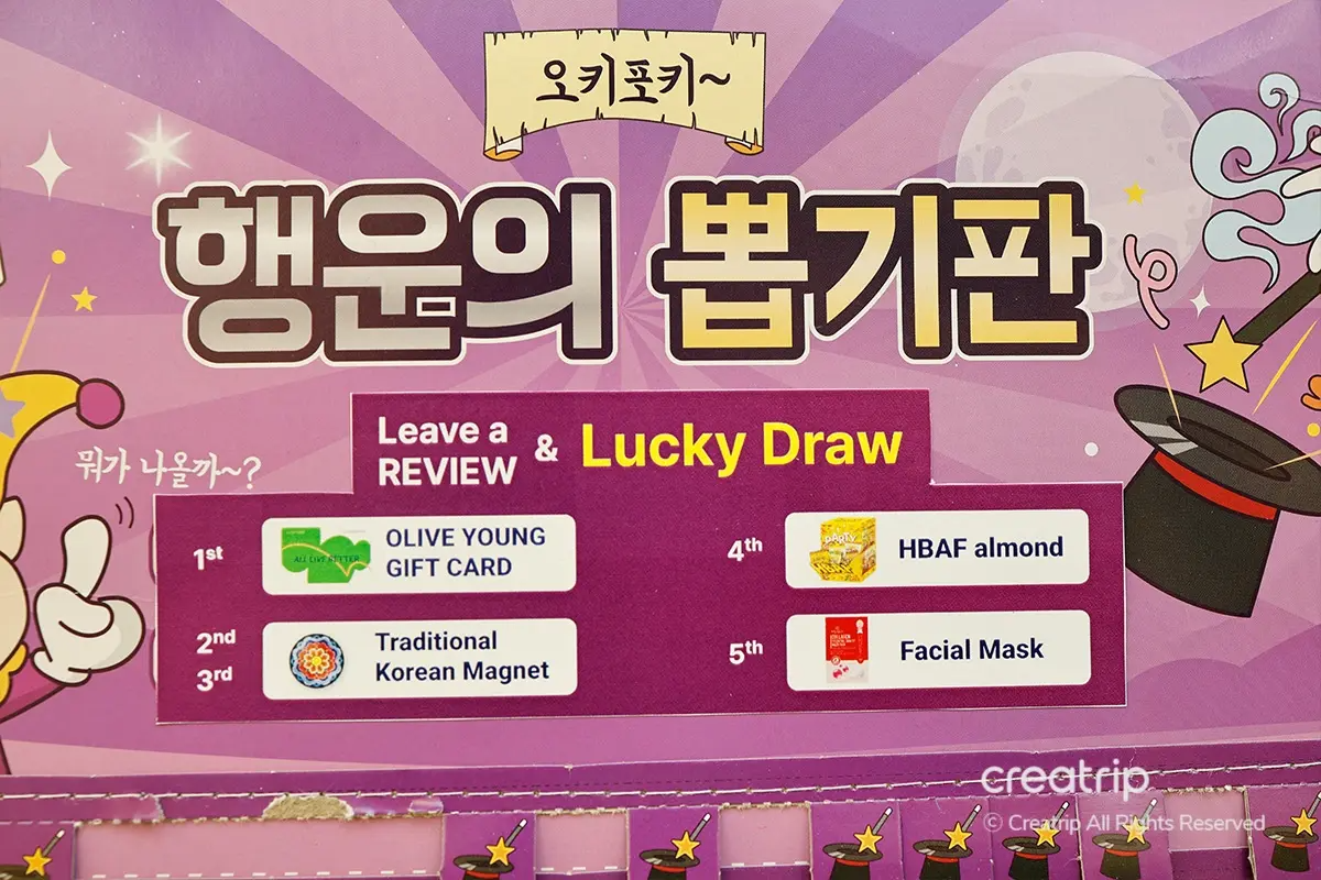 1. Write a review on Creatrip, and get a chance to participate in the lucky draw event! (Prizes may vary depending on your visit.)