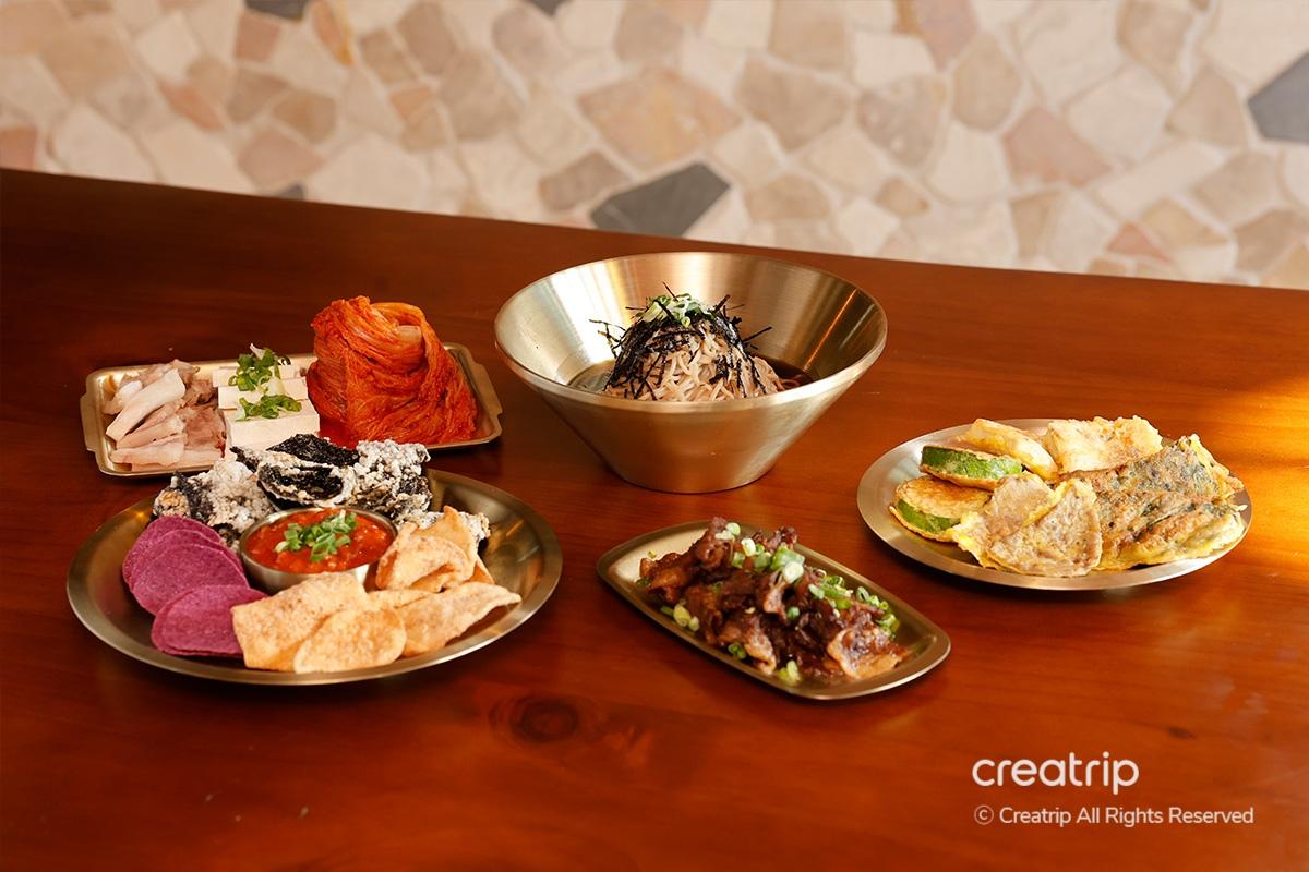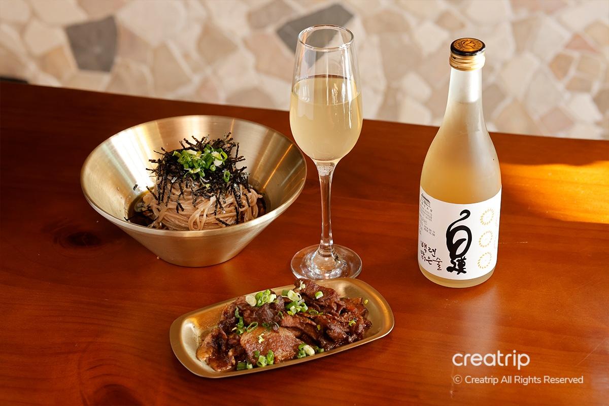 The accompanying Omegi Makgeolli is a premium traditional wine that is fermented for a long-time without artificial sweeteners and additives. A fresh, natural fruity scent arises and its unique sweet and sour taste whets the appetite.