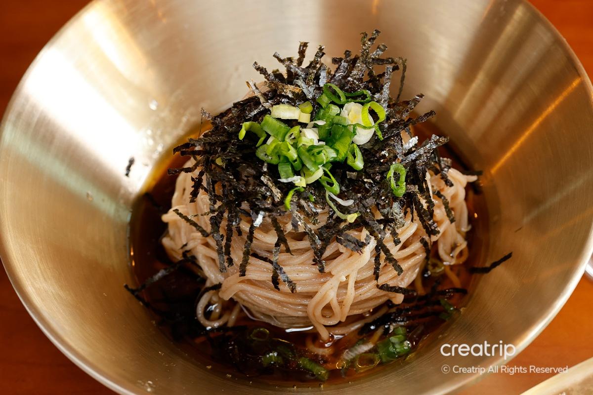 The buckwheat noodles, which made my mouth water with the savory perilla oil aroma, and the sweet and salty soy sauce marinated pork ribs were the most delicious.